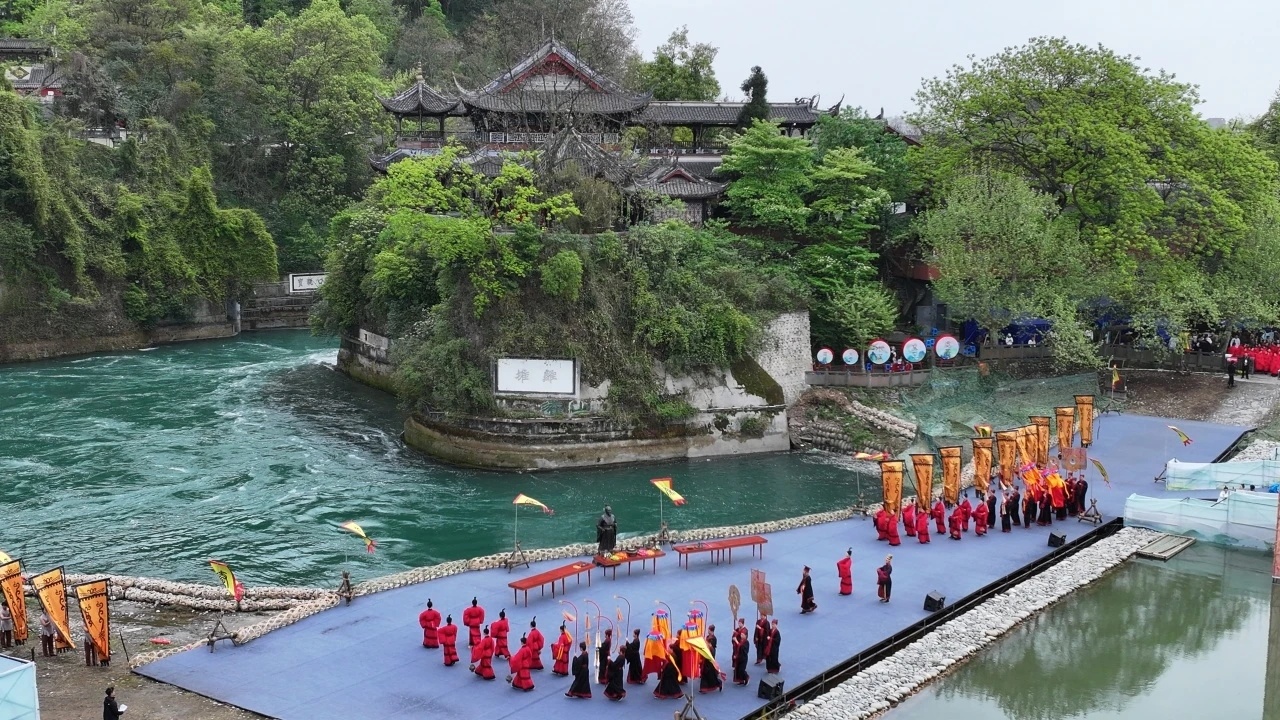 4月4日清明节,都江堰举行放水仪式,标志着都江堰灌区春灌工作全面启动。