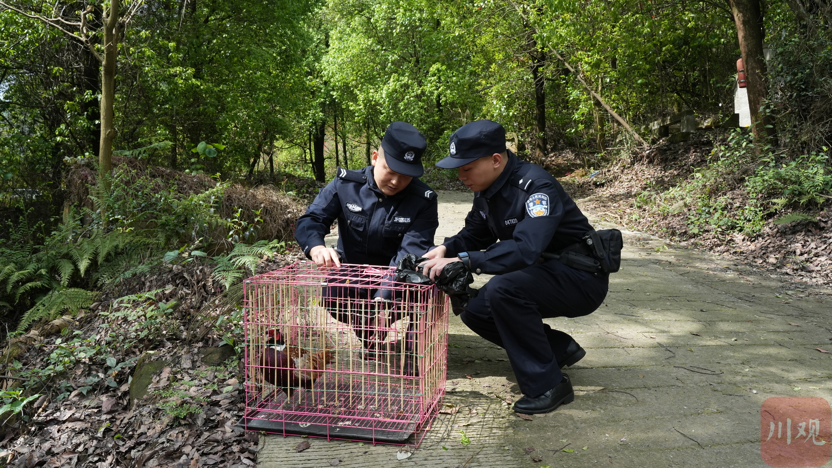 近日,在宜宾七星山深山茂林处,宜宾市公安局叙州区分局蜀南大道派出所民警文艺龙和同事放生国家“三有”野生动物环颈雉(野鸡),他小心翼翼地打开笼子的一瞬间,环颈雉便飞进了树林中,很快消失在大家的视野里。