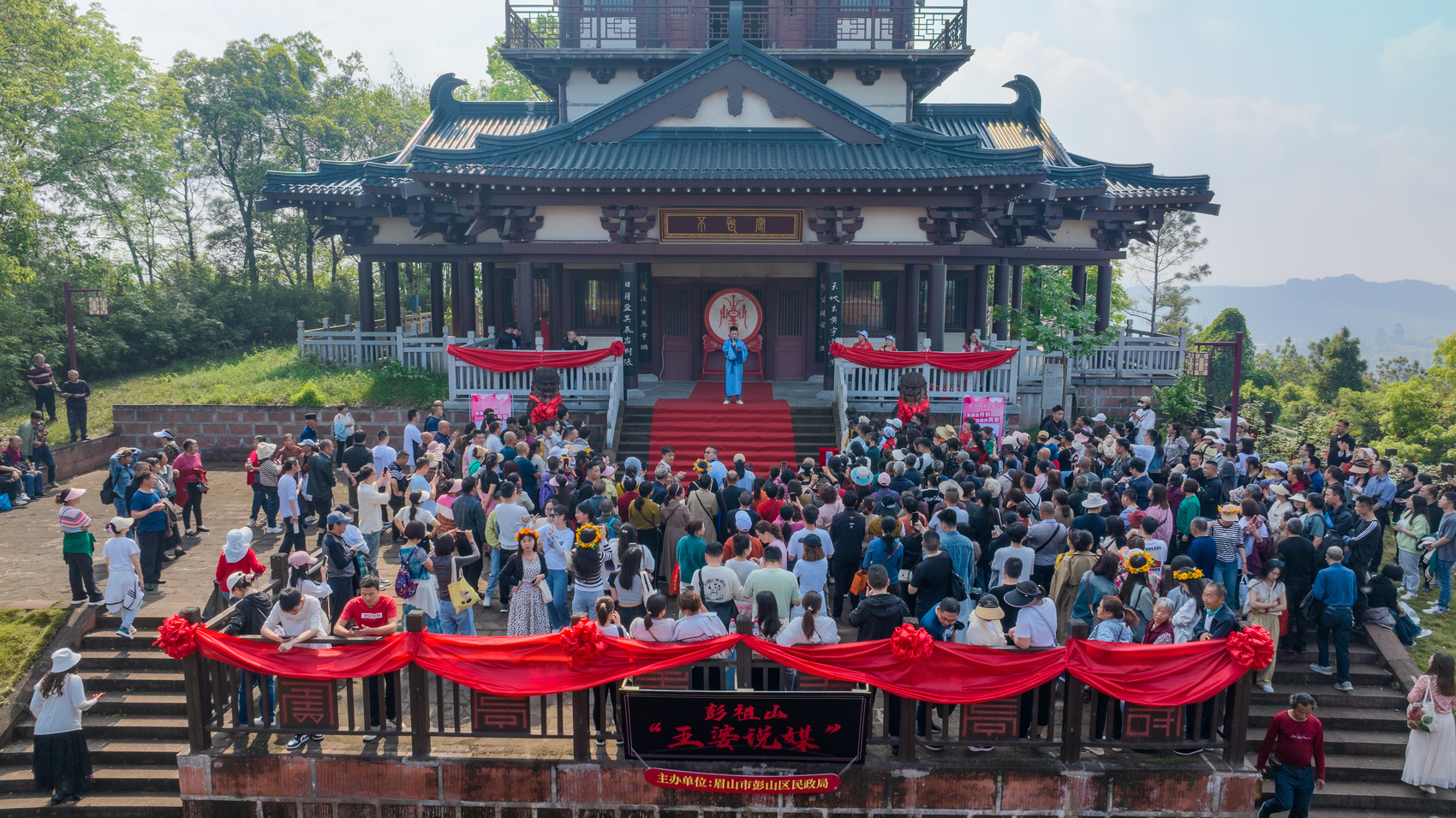 4月11日,农历三月初三,一场盛大的非遗朝山会在眉山市彭山区彭祖山景区如期上演。这一日,不仅是彭祖文化的传承之日,更是四方游客慕名而来的朝圣之时。今年的朝山会恰逢被列入省级非遗保护名录的十周年,意义非凡,吸引了成都、重庆、乐山等地的游客和本地市民,人数众多,场面热闹非凡。