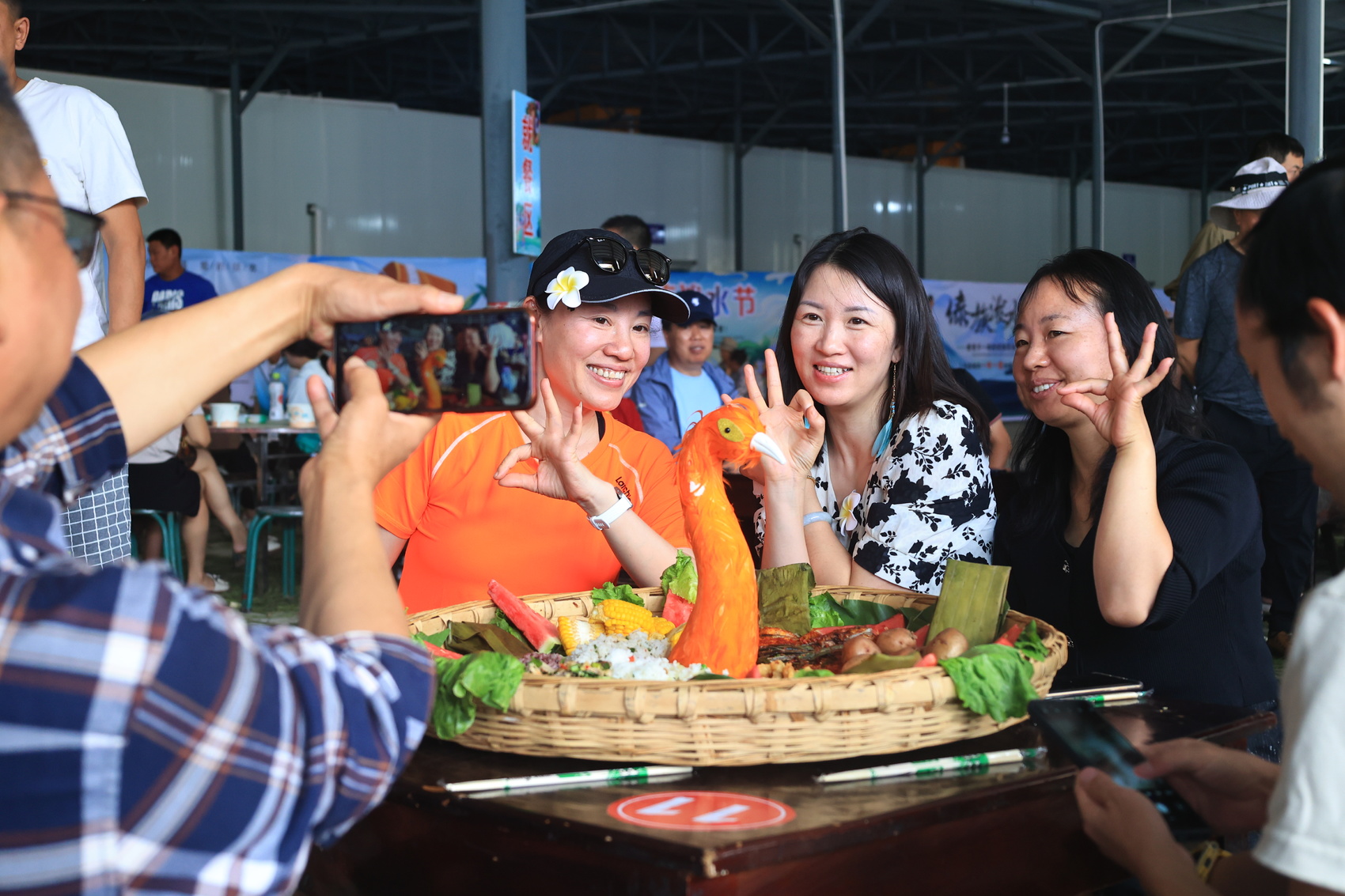 除了泼水活动,红岩村还举办了歌舞表演、红岩共富集市以及“五谷丰登·长街宴”等多样化活动。在“傣味十足”的经典音乐声中,当地村民和游客带来了《傣哥傣妹打歌来》、《月光下的凤尾竹》等精彩节目,大家纵情欢歌打跳。集市上,游客们还可以品尝到地道的傣家美食,如米酒、簸箕宴等。