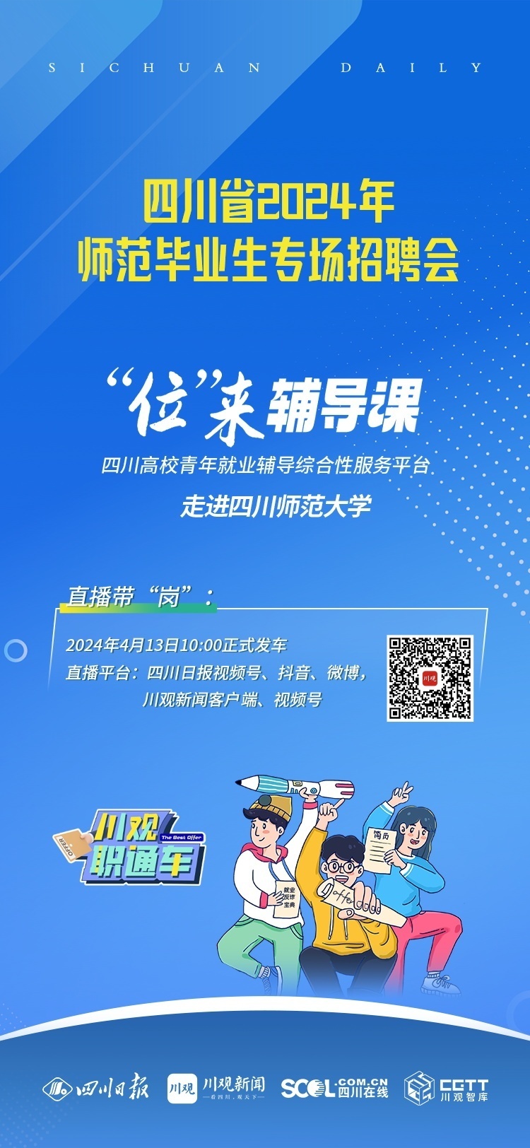 4月13日,在四川师范大学举办的四川省2024年师范毕业生专场招聘会现场,四川日报社联合众多高校共同推出的青年就业辅导课程——“位”来辅导课,邀请到四川天府新区桐湾幼儿园、四川师范大学附属青台山小学、 四川省成都华西中学、成都市成飞中学的招聘负责人做客直播间,为应聘教师的同学们支招。