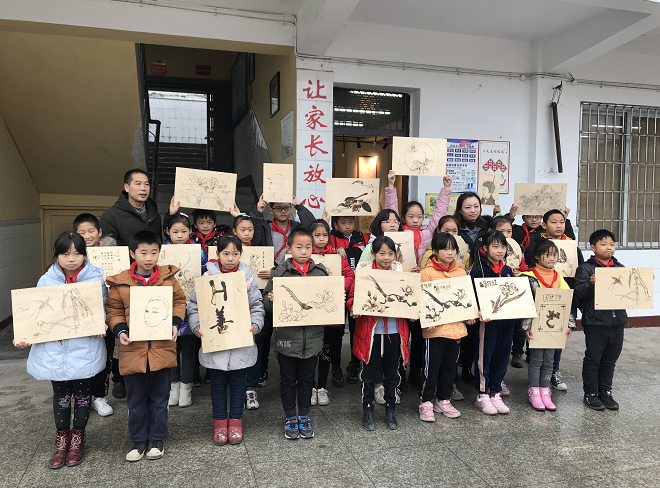 除了自己学习烙画以外,高平仲也一直致力于发扬和推广这门有2000多年历史的艺术技法。2014年,在高平仲的积极争取下,凌家镇伏龙乡村学校少年宫开设了汉安烙画兴趣小组,并义务担当起同学们的烙画辅导员,将烙画这枚艺术的种子,播撒进同学们的心中。
