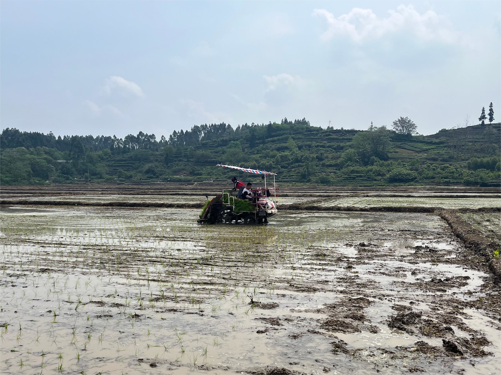 乐天农业工作人员正在夹江县甘江镇金银河村插秧。