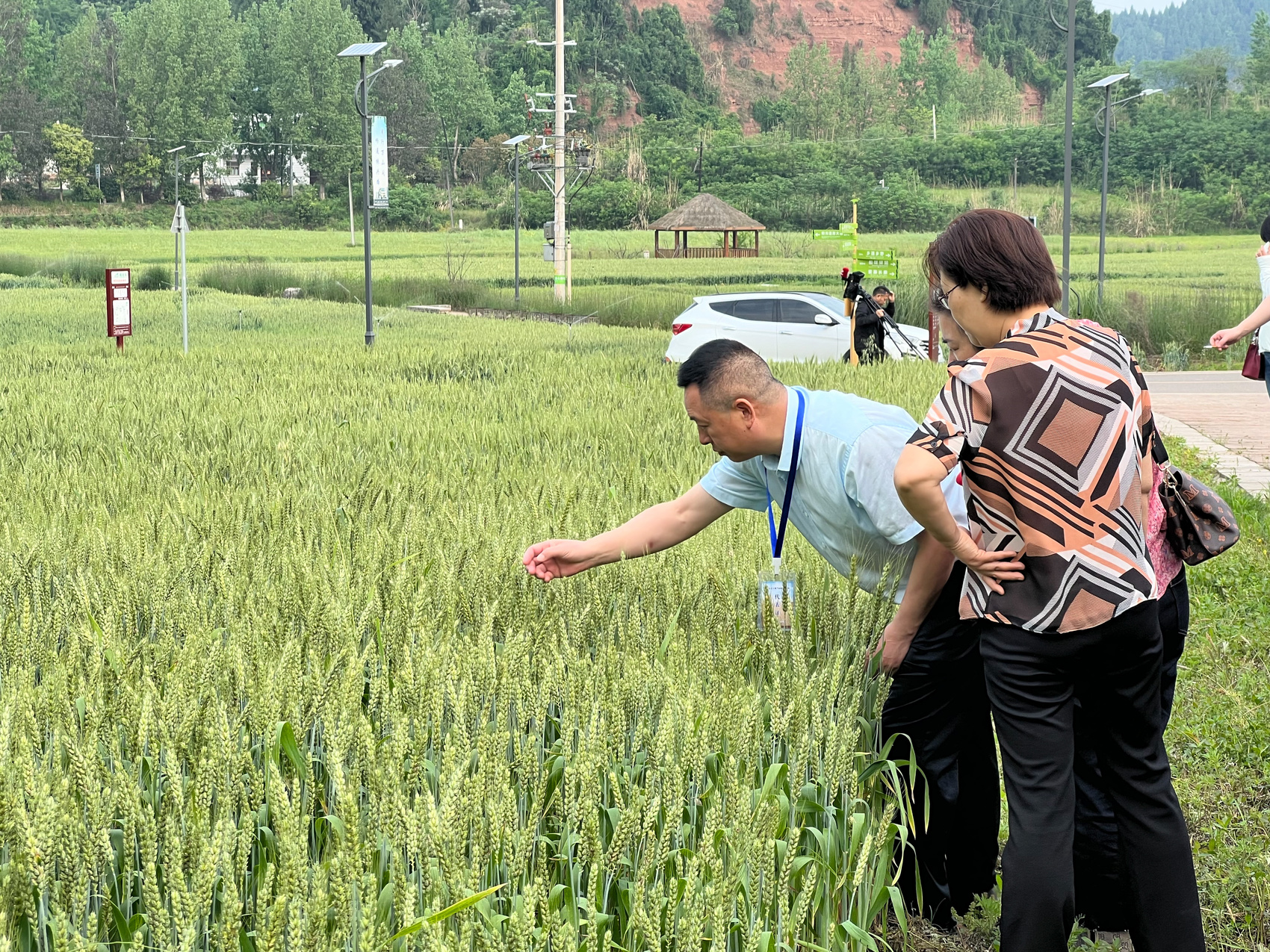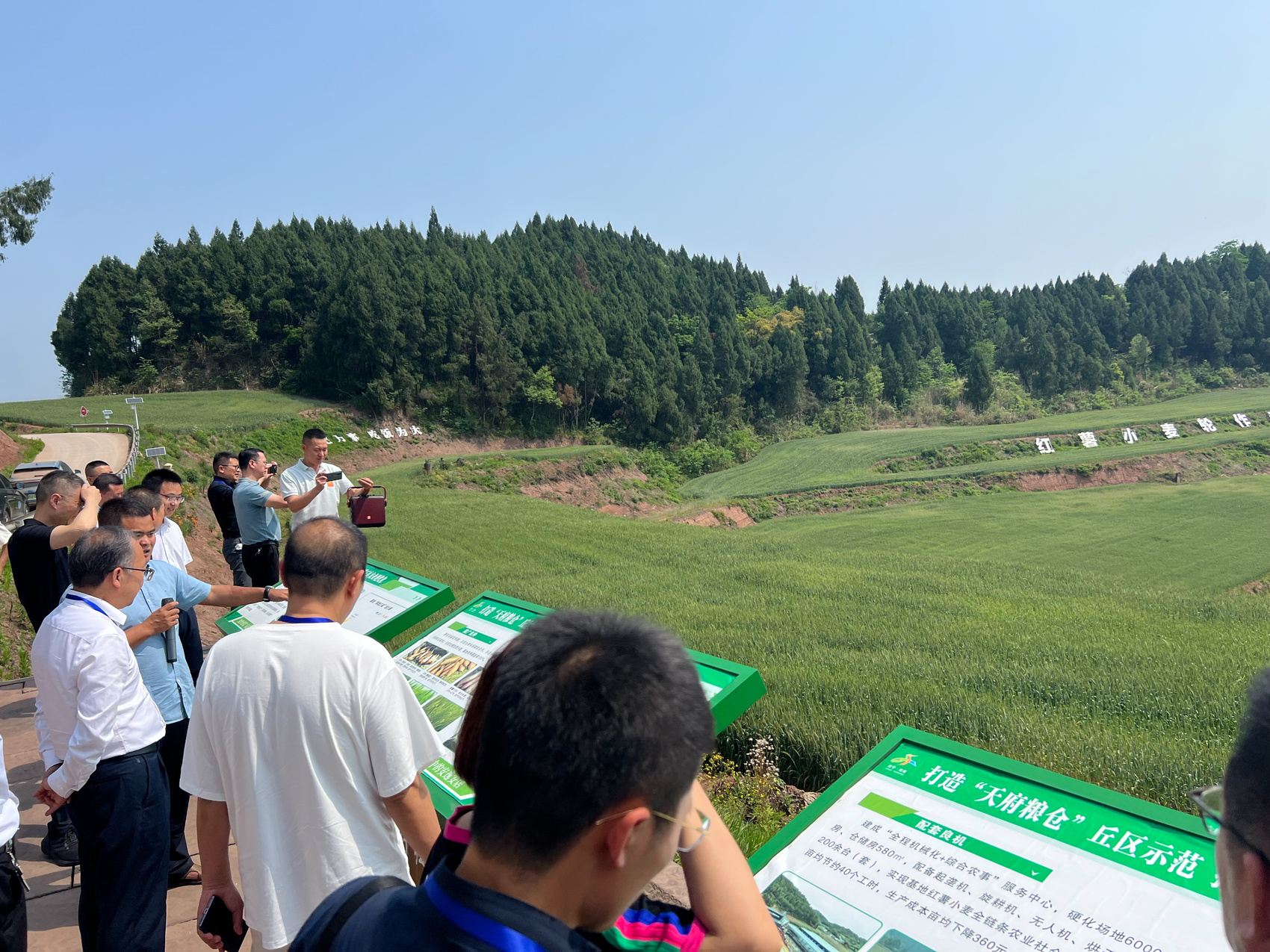 与会嘉宾在船山区粮油现代农业园查看小麦种植情况。