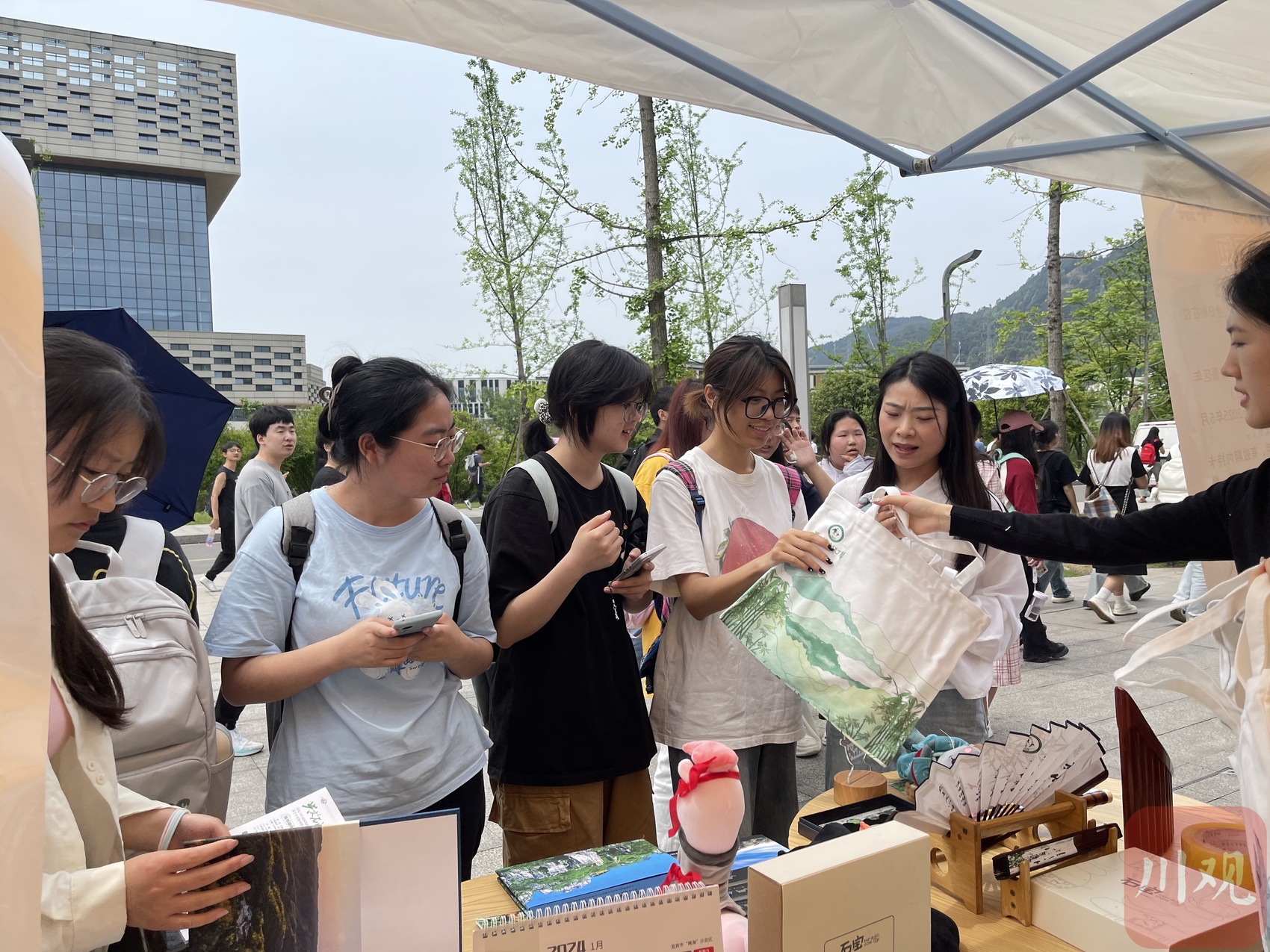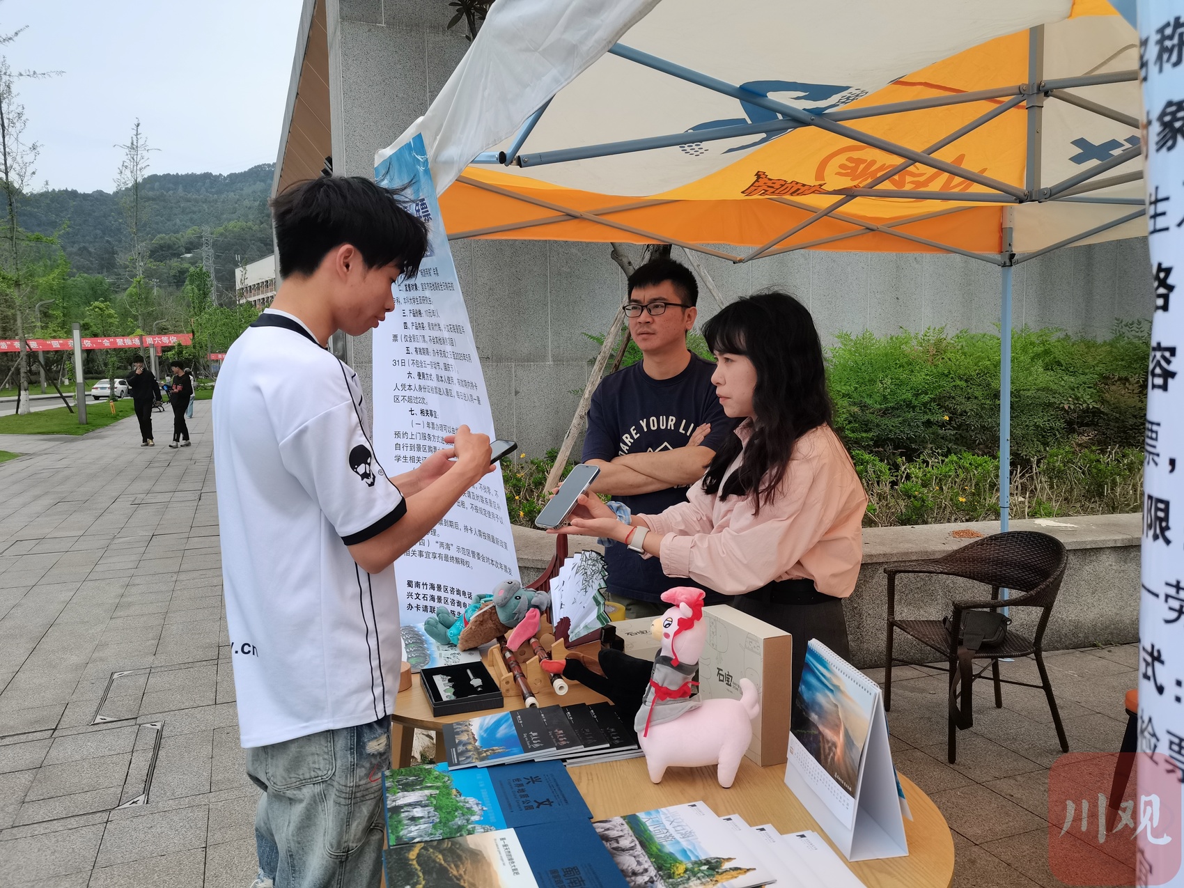 当天,蜀南竹海、兴文石海景区年票在校集中办理现场热闹非凡,前来了解办理情况的学生络绎不绝,两海示范区管委会工作人员纷纷为上前咨询的同学热情介绍并耐心讲解,并赠送出特色文创礼品。