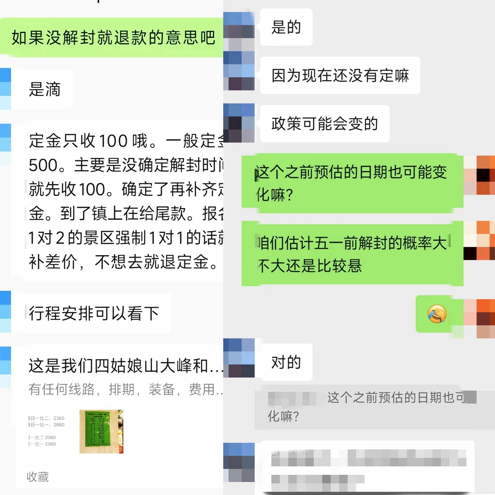 记者联系了其中一家机构,对方可提供“1对1”“1对2”(即协作向导与登山客户的比例)等不同等级的4月20日以后的登山服务,同时对方也补充说明官方解封时间未最终确定,若因四姑娘山户外运动尚未解封,未成行可退款。
