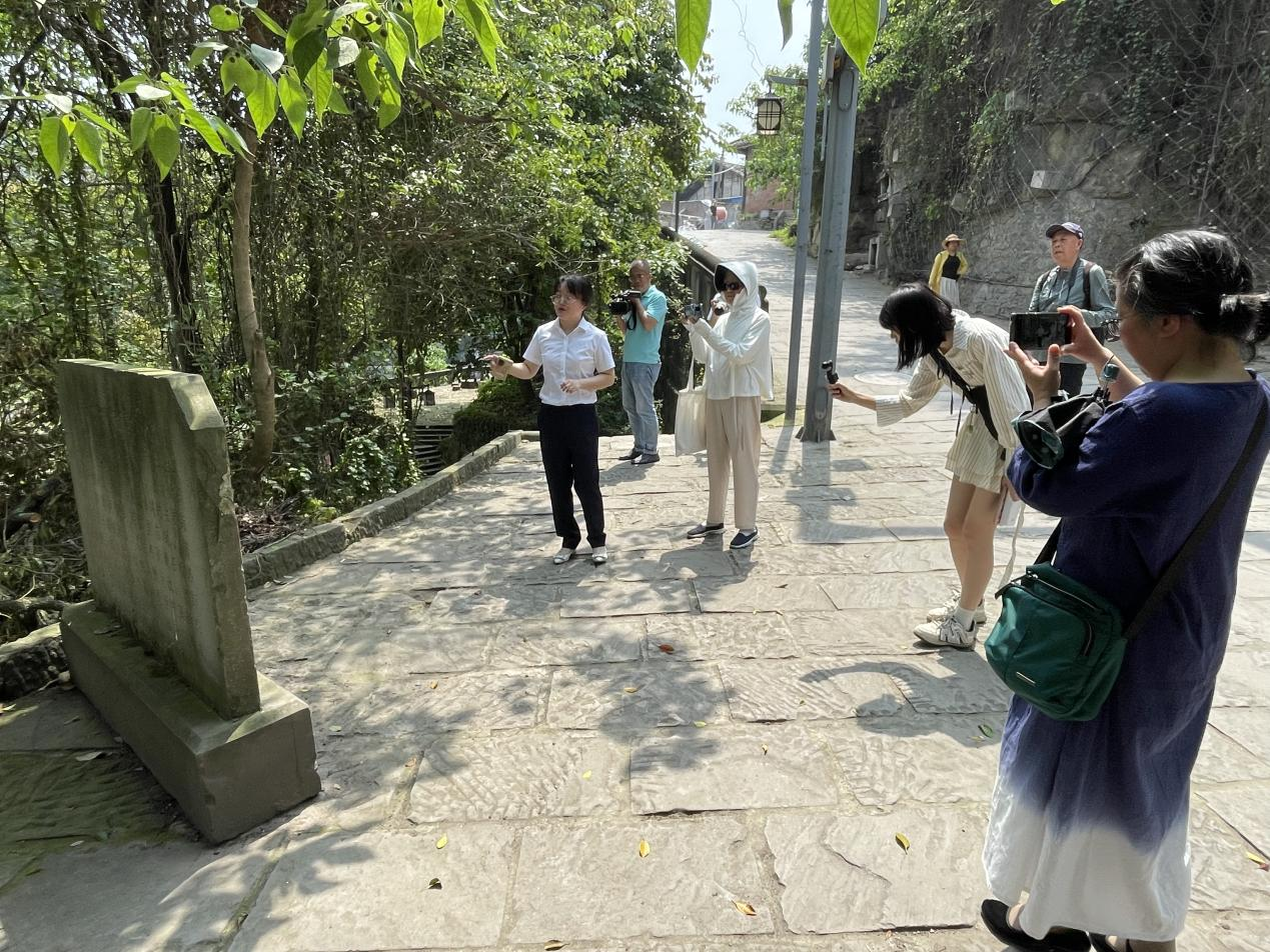 最后,采风团来到中桥的古盐道遗址,拍摄至今仍然保留的古盐道。这里曾是茶马古道的组成部分,历史上富荣井盐场(贡井盐场)向荣县威远运输盐巴、煤炭、卤水的连接线,也是中桥两岸盐井灶从水路转运盐巴的主要通道,为贡井盐业的运输作出重大历史贡献,至今继续发挥着交通作用,为两岸居民出行提供方便。
