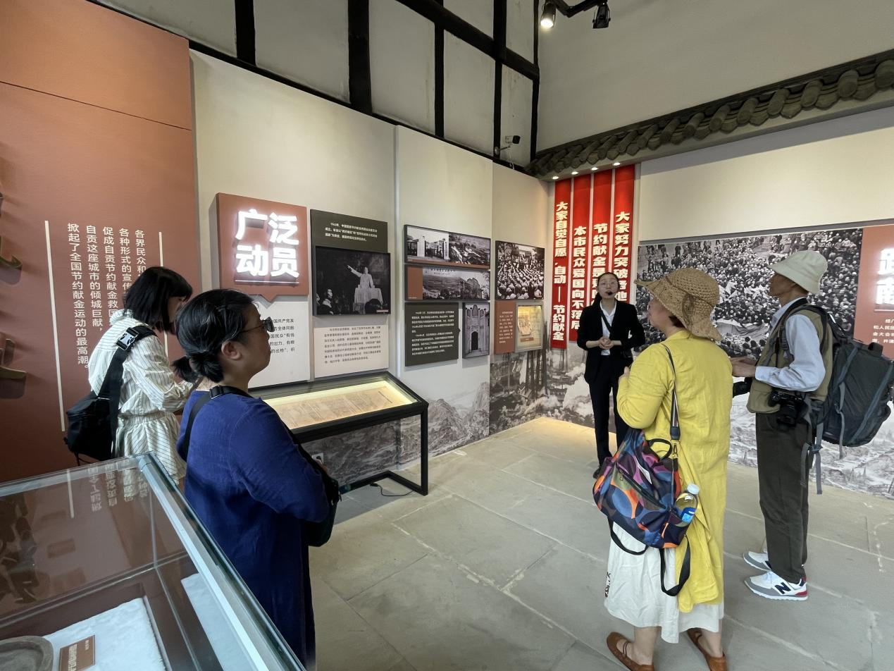 “这是当年自贡盐商和老百姓为抗日献金的现场,大家可以看到有许多贫穷的百姓,都纷纷伸出援手,拿出自己微薄的积蓄,支援抗战事业。”随着解说员的讲解,采风团参观全国首个以“抗日献金运动”为主题的陈列馆——自贡抗日献金运动陈列馆,这里的历史故事和遗迹深深地感染了大家。