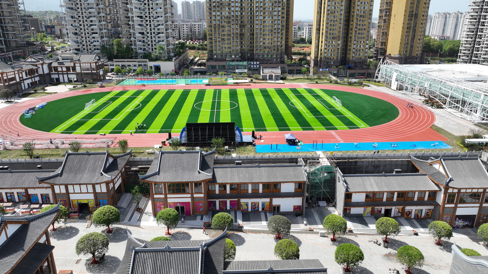 4月19日,宜宾市屏山县3A体育公园内,工作人员正在为第二天的宜宾市第七届校园足球市级联赛(屏山赛区)相关活动做准备。3A体育公园位于屏山县岷江大道与二号匝道交界处,总建筑面积超过4万平米,是一个集运动中心、全民健身中心、体育健身区、景观区、特色商业街区等多功能于一体的综合性体育公园。