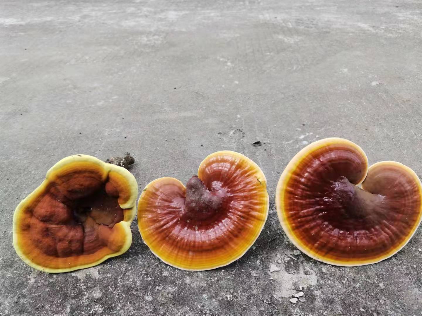 左一为赤芝,菌盖表面无光泽;右两图的灵芝表面有光泽,其中就有“康定灵芝”。