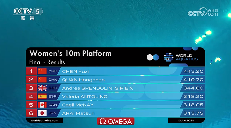 世界泳联2024跳水世界杯总决赛21日比赛中,陈芋汐获得女子10米跳台比赛冠军,全红婵获得亚军。