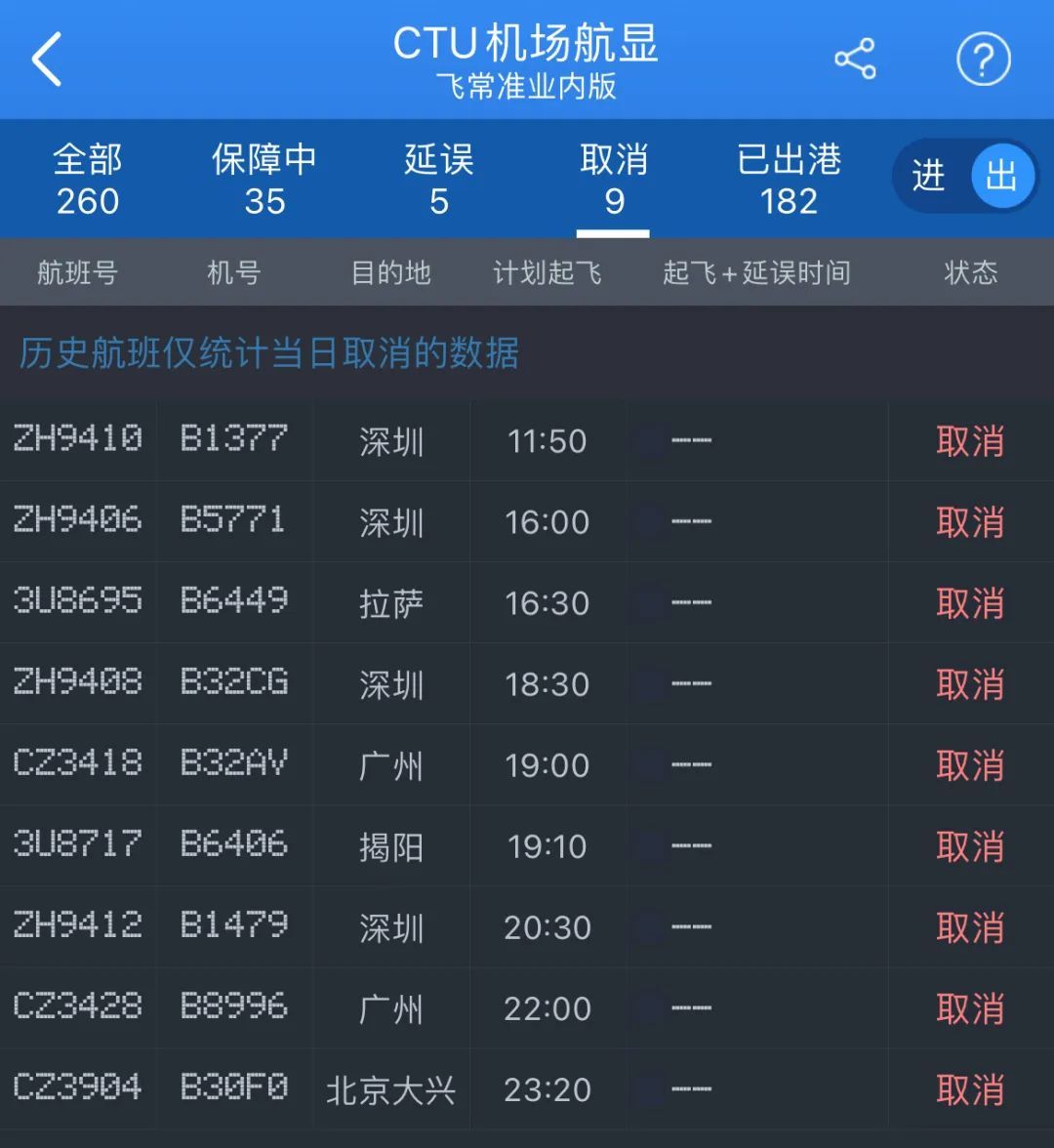 (今日,成都双流飞广州、深圳多个航班取消)