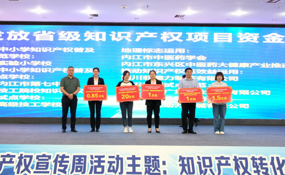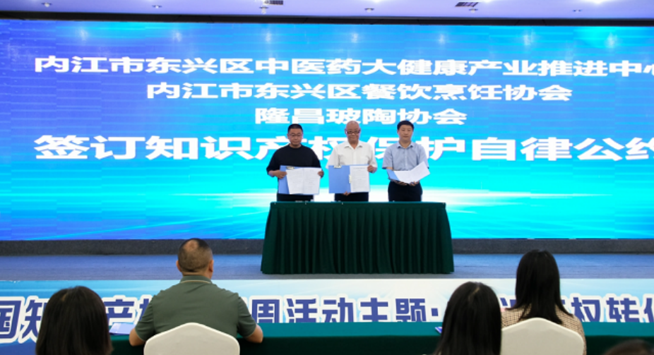 启动仪式上,隆昌玻陶协会、东兴区餐饮协会、东兴区中医药大健康产业推进中心3家行业协会代表签订了知识产权保护自律公约;现场为内江市实验小学、内江七中、内江市高级技工学校发放知识产权普及教育试点示范奖补资金,为获得省级知识产权项目企业发放项目资金;颁发“内江市知识产权专家智库”专家聘书。仪式最后,发布了内江市2023年知识产权保护典型案例,通过典型案例示范指导作用,提升全市知识产权行政执法和司法保护水平。
