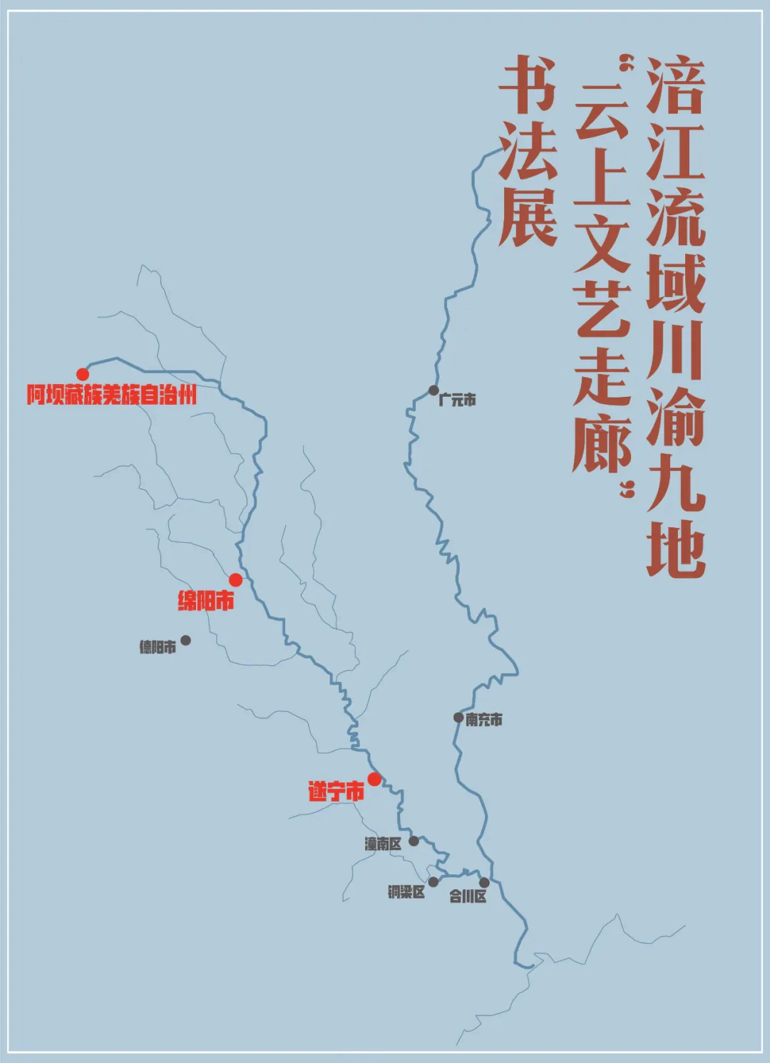 2023年3月24日,绵阳市文联发起,联合涪江流域川渝九地联动搭建“云上文艺走廊”,组织九地的文学、书法、美术、摄影、音乐、舞蹈、民间文艺等文艺门类的文艺家,创作具有地域文化特色的文艺作品,通过“云上文艺走廊”在九地同步联动展示,以文艺的方式,共唱涪江之歌、共绘涪江长卷、共书涪江之情。