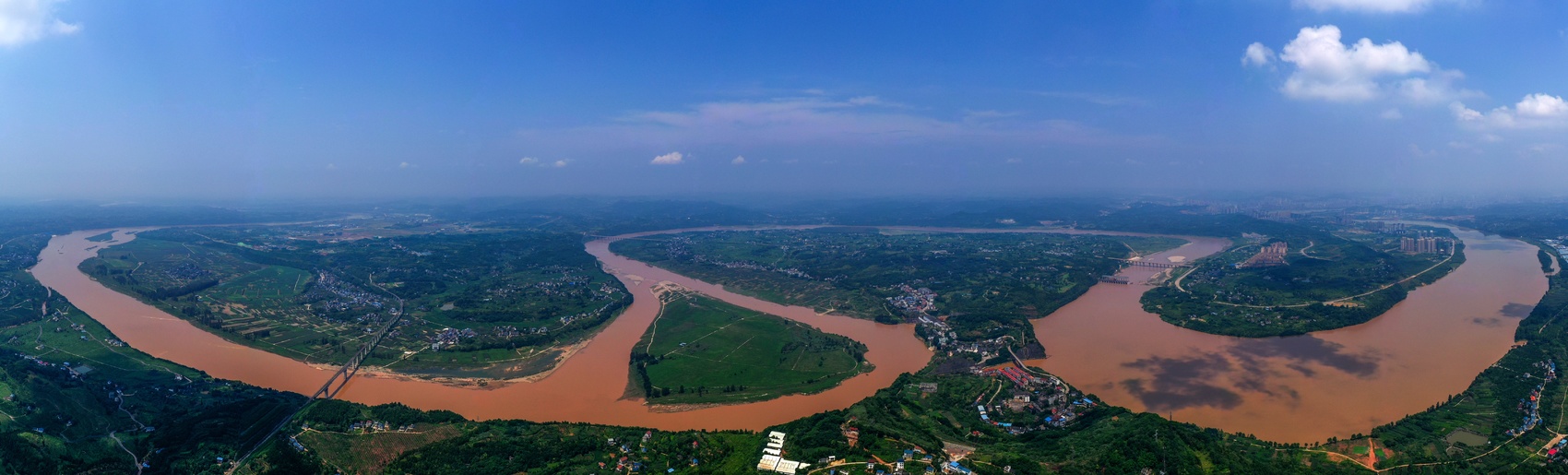 比如嘉陵江,南充高坪青居、南充蓬安马回、广安武胜东西关三大“Ω”形曲流,将曲流之美演绎到极至,被戏称为“359度”曲流。其中,南充高坪青居段的曲流,曲率达42.75,封闭率达0.98,堪称完美曲流,是自然界的一大奇观。
