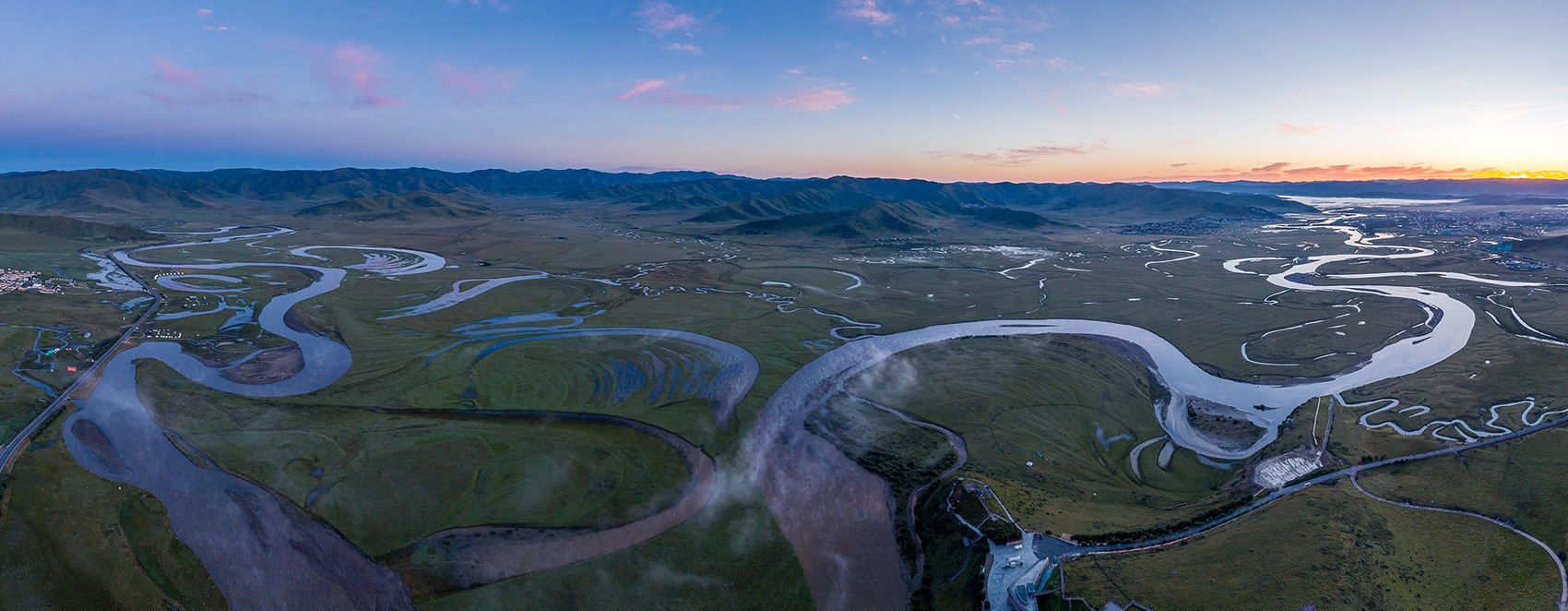 在四川西北角,一掠而过的黄河“跳”了一路华尔兹,在这里驻步不前、流连回眸,留下河曲成群的美丽身影,形成最美的“黄河曲线”。