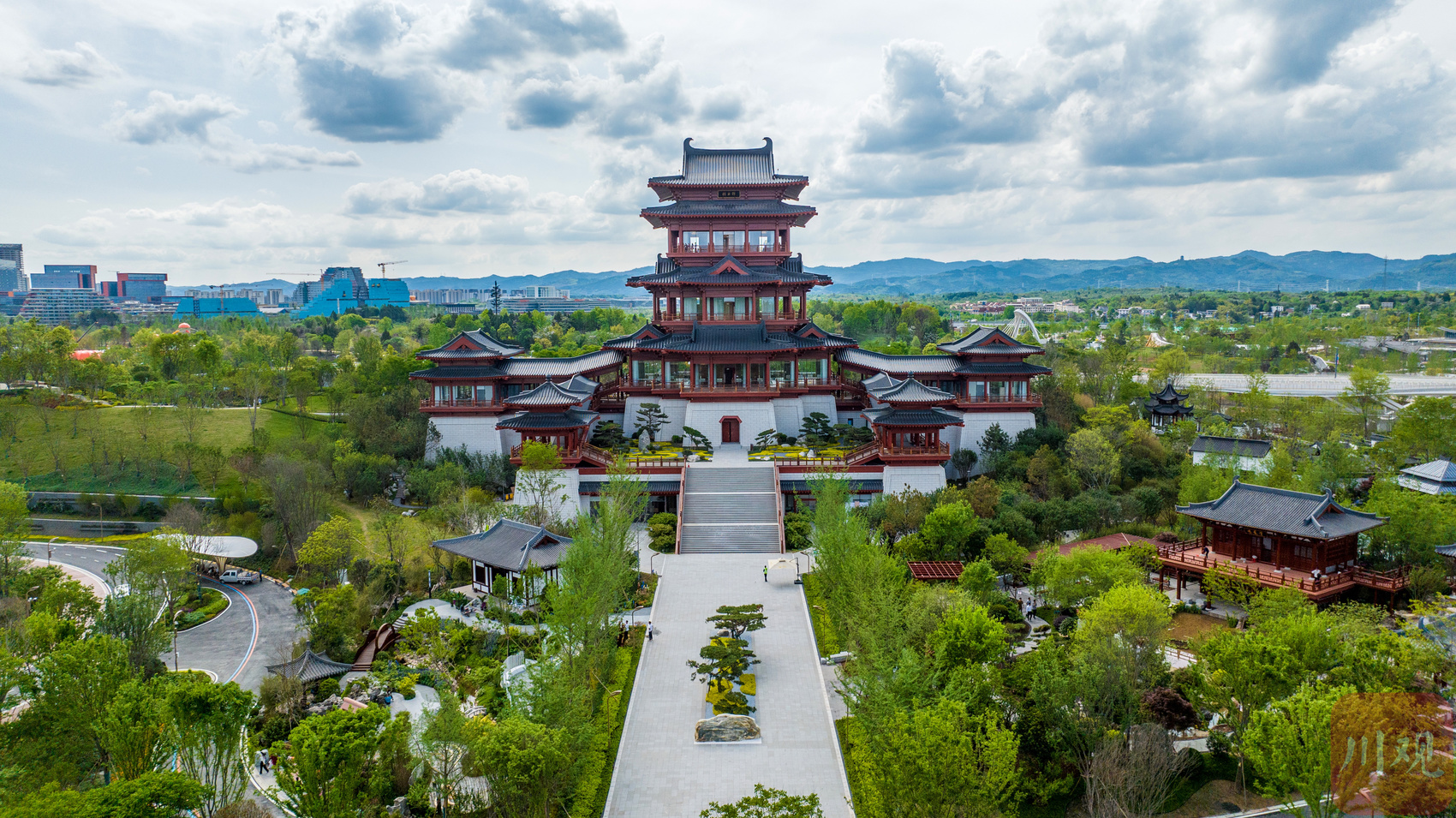 鸟瞰天府人居馆,这是园区内最具成都特色的情景空间。