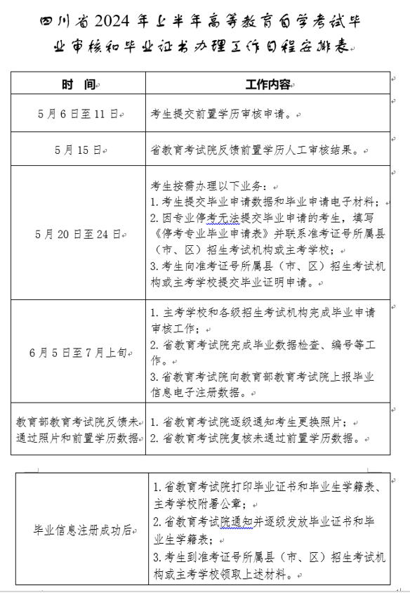 川观新闻记者4月23日从四川省教育考试院获悉,四川省2024年上半年高等教育自学考试毕业申请工作即将开展,相关事项安排已确定。