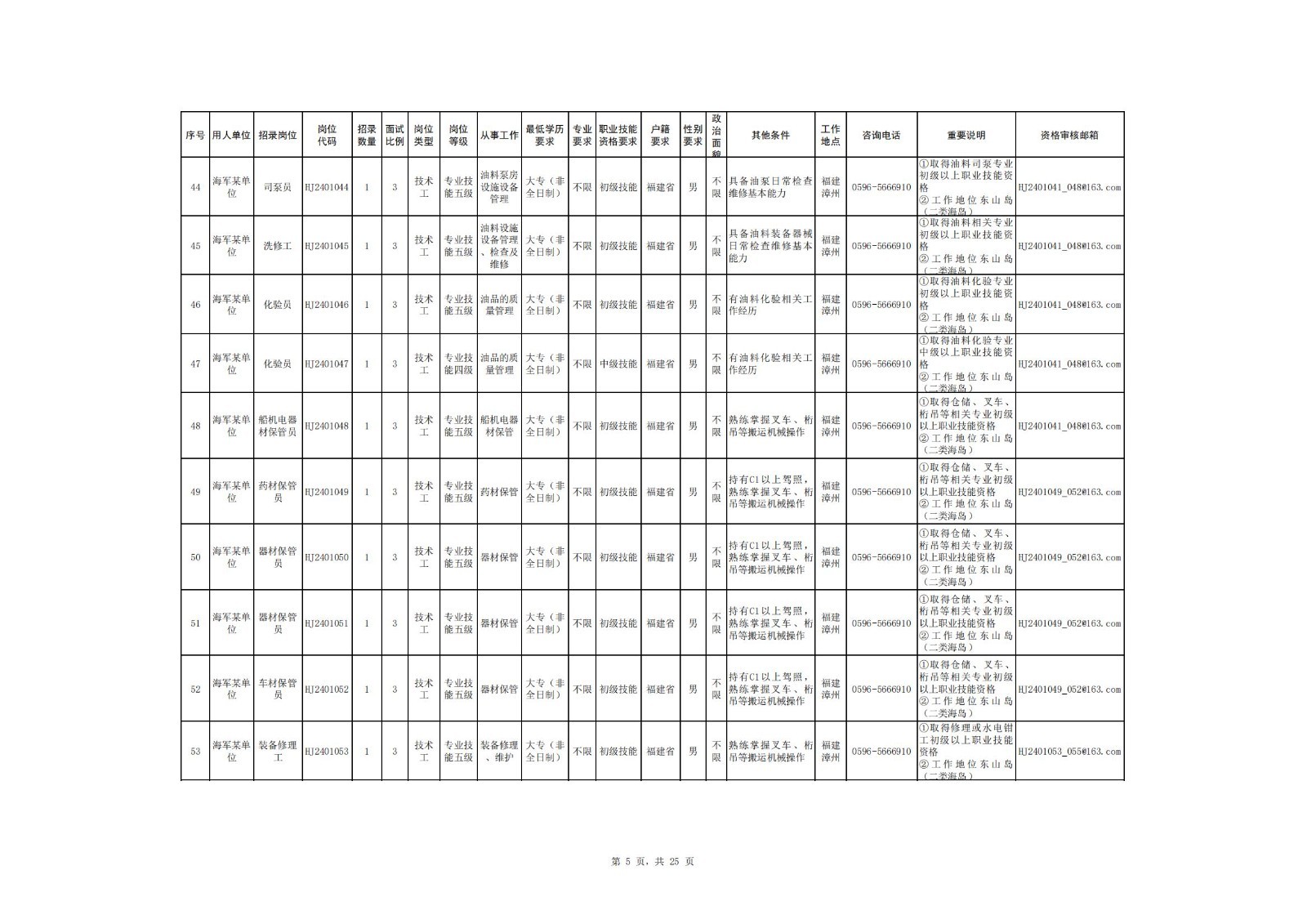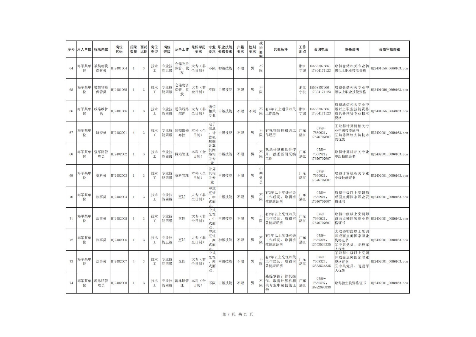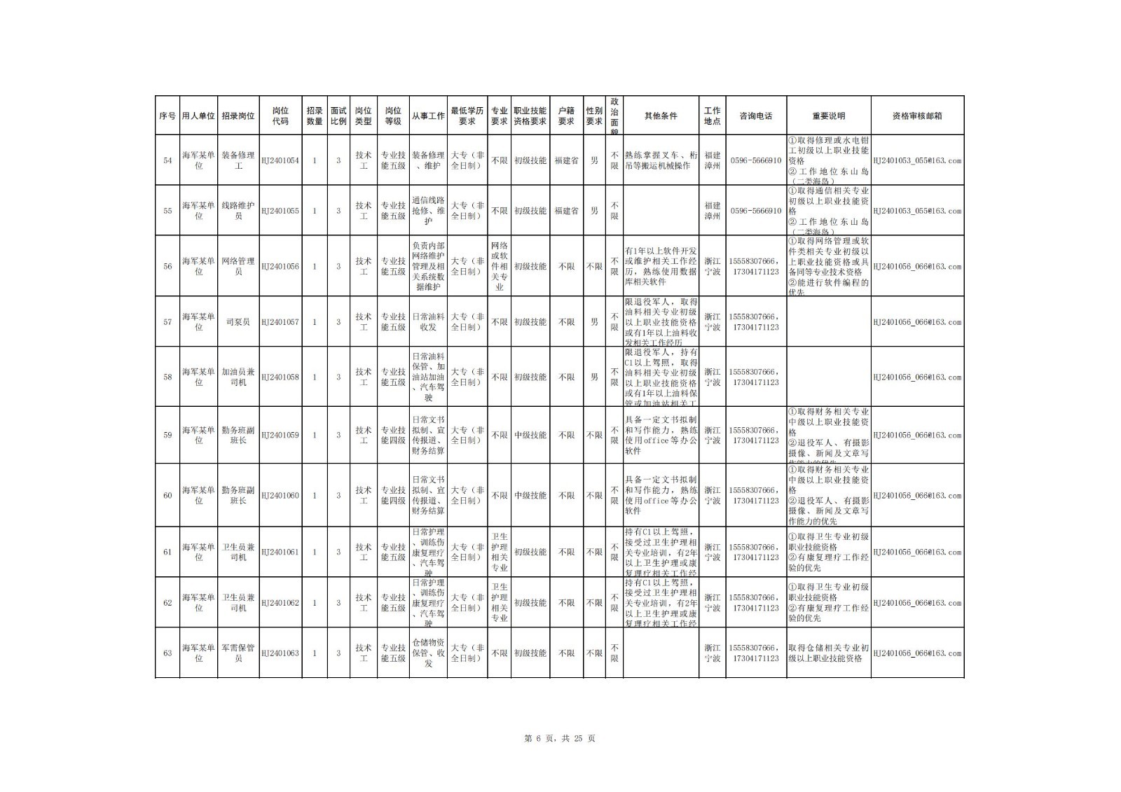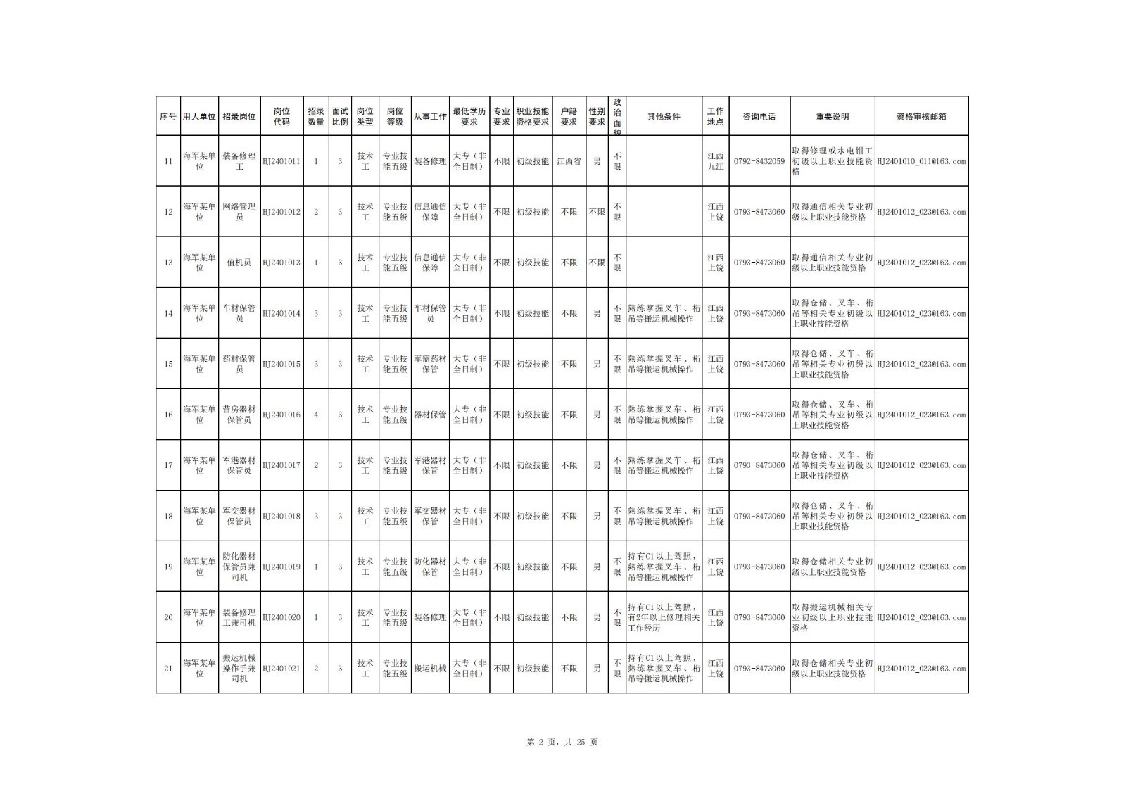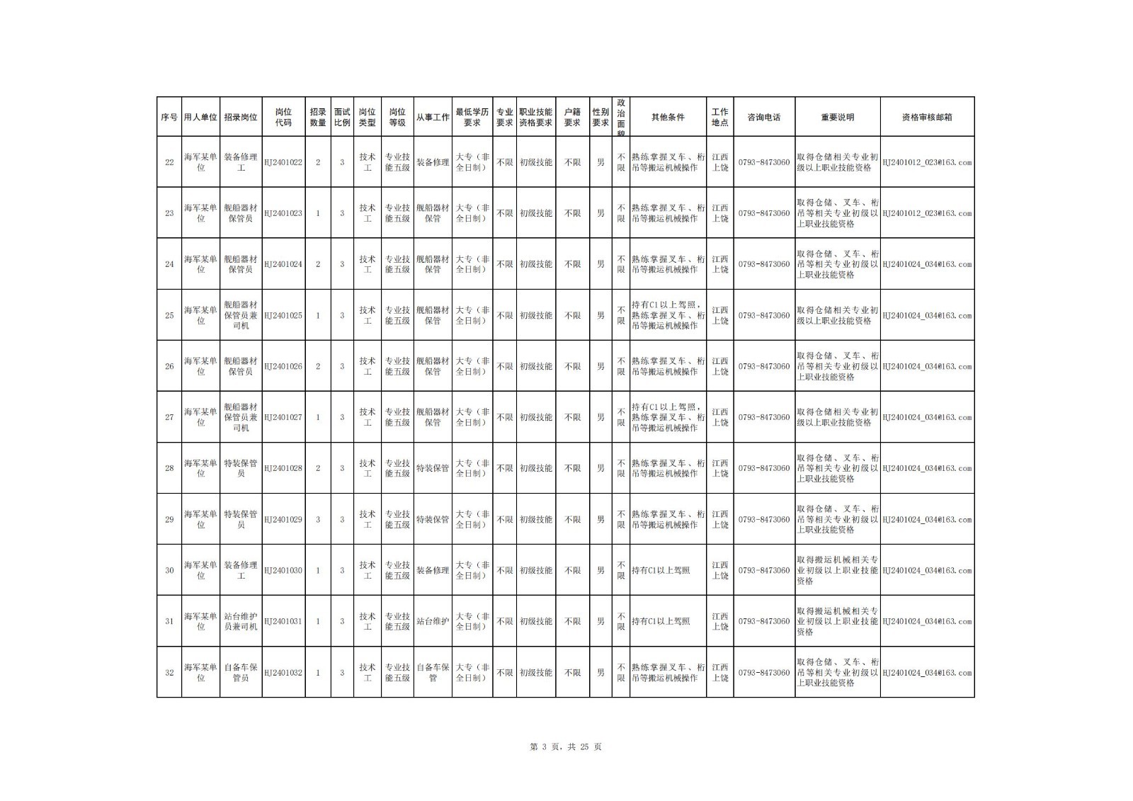 海军相关单位从事装备维修、物资器材存储、后勤保障、文化服务等工作的技术工岗位。