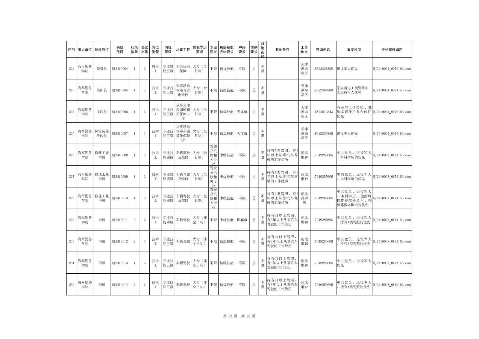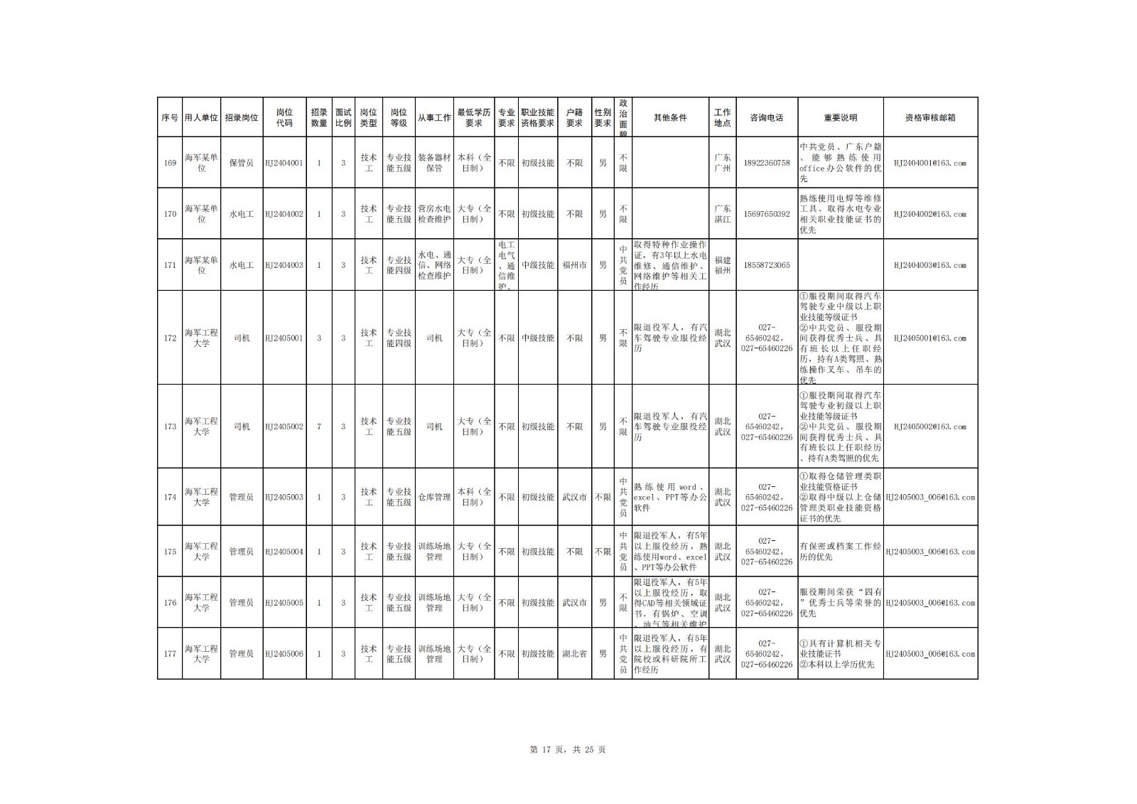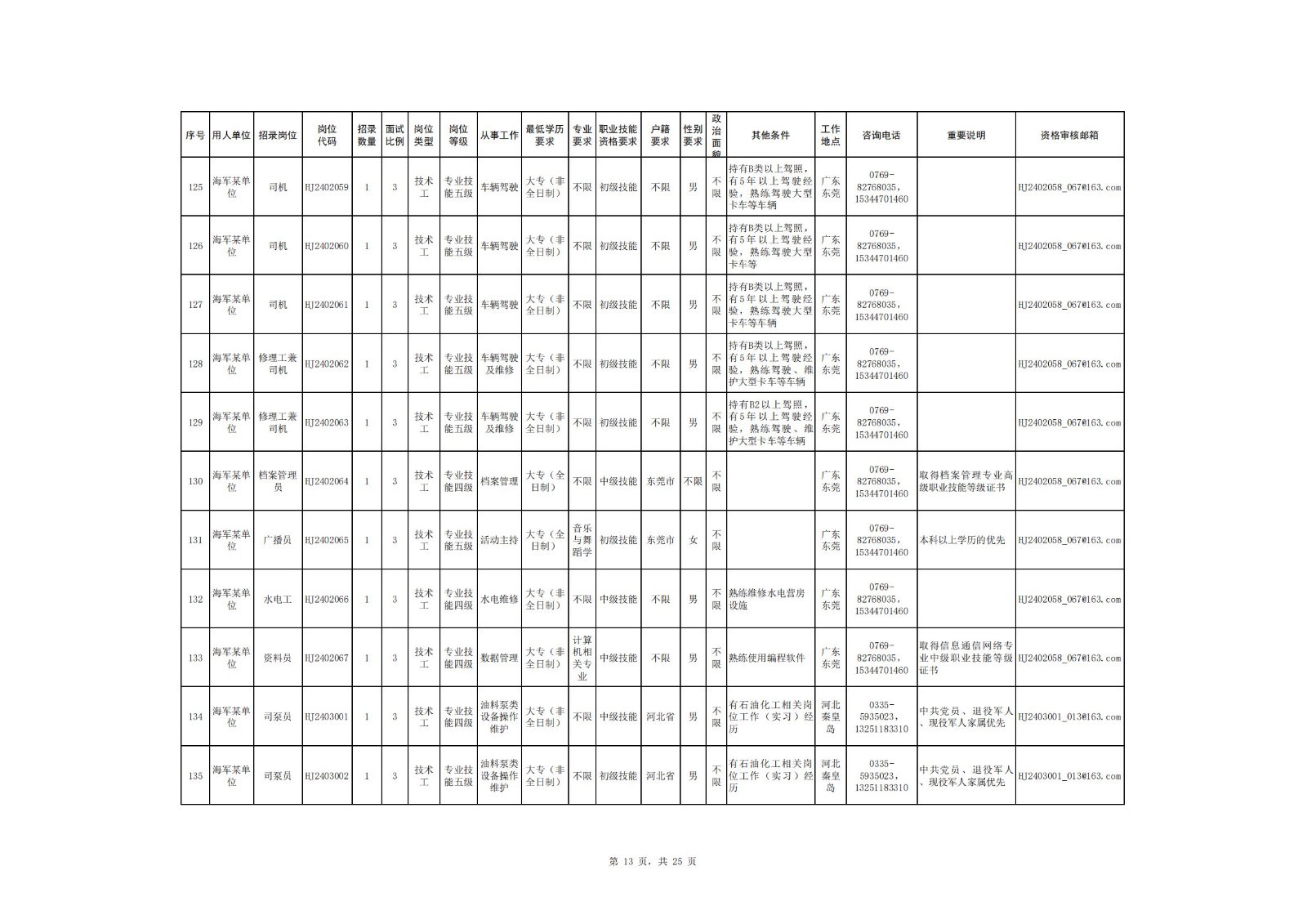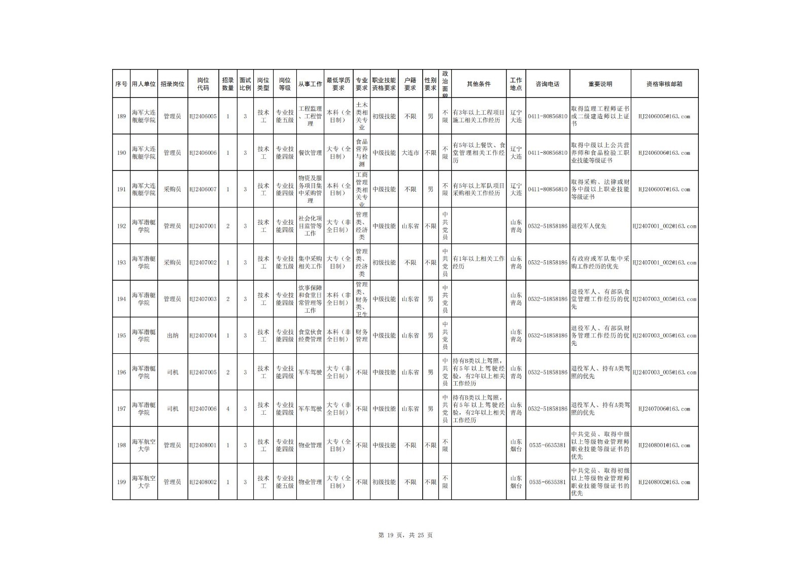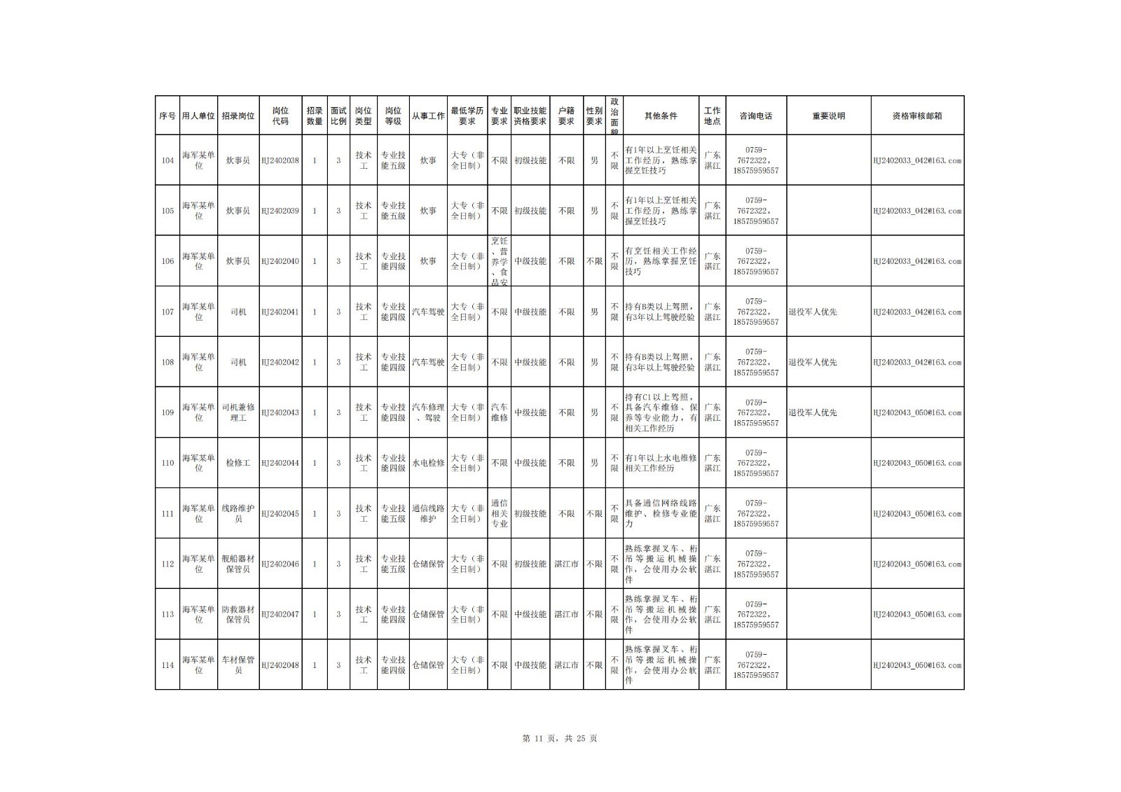 海军相关单位从事装备维修、物资器材存储、后勤保障、文化服务等工作的技术工岗位。