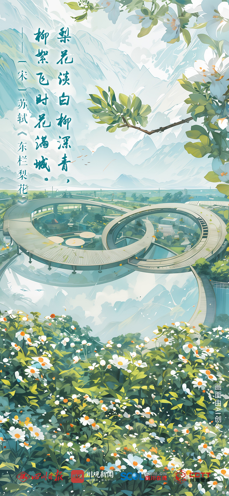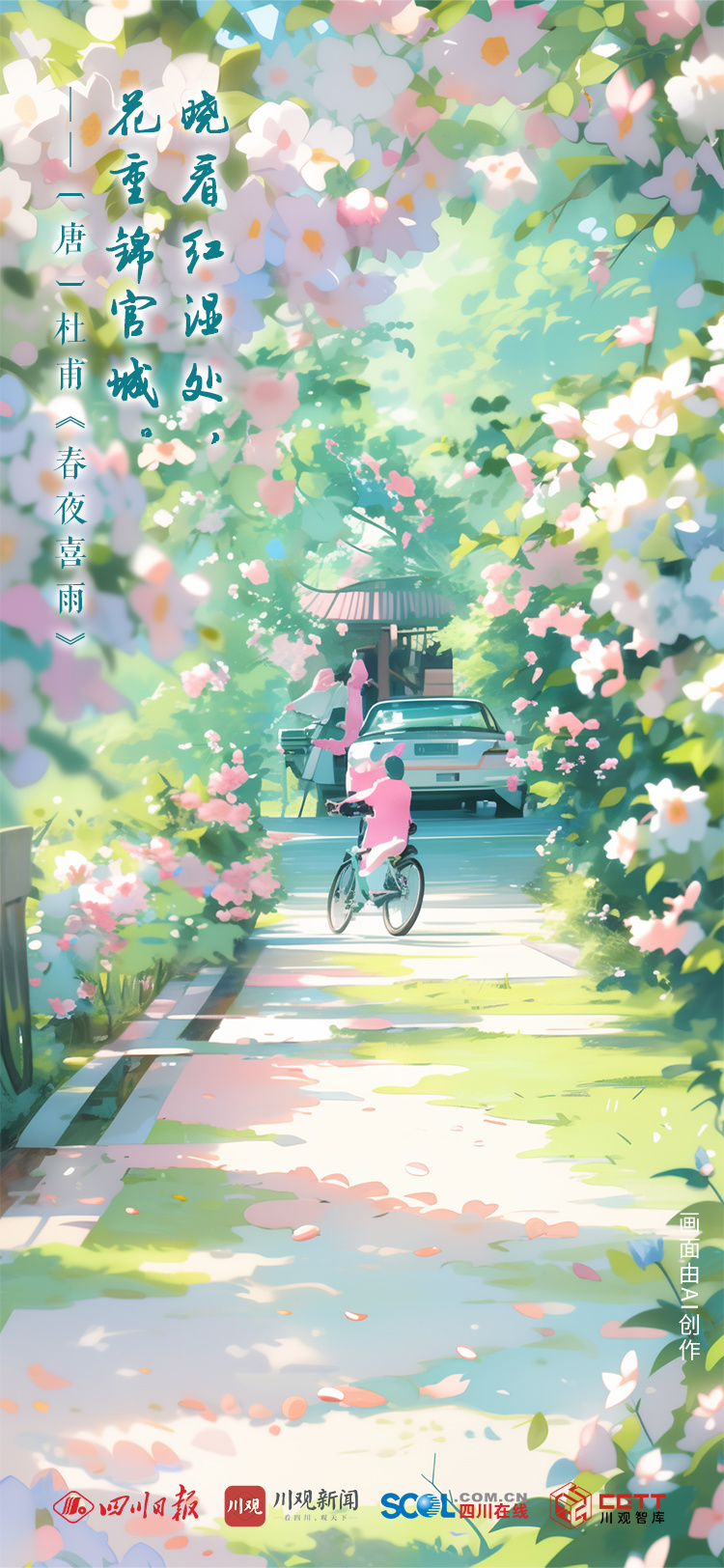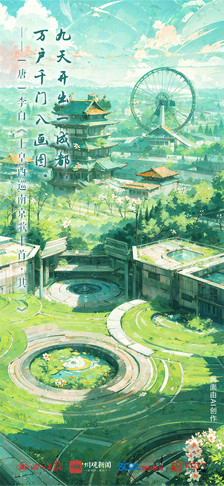 “花花世界”迷人眼,诗人下笔亦“飞花”;此景只应天上有,下凡成都襄盛事。