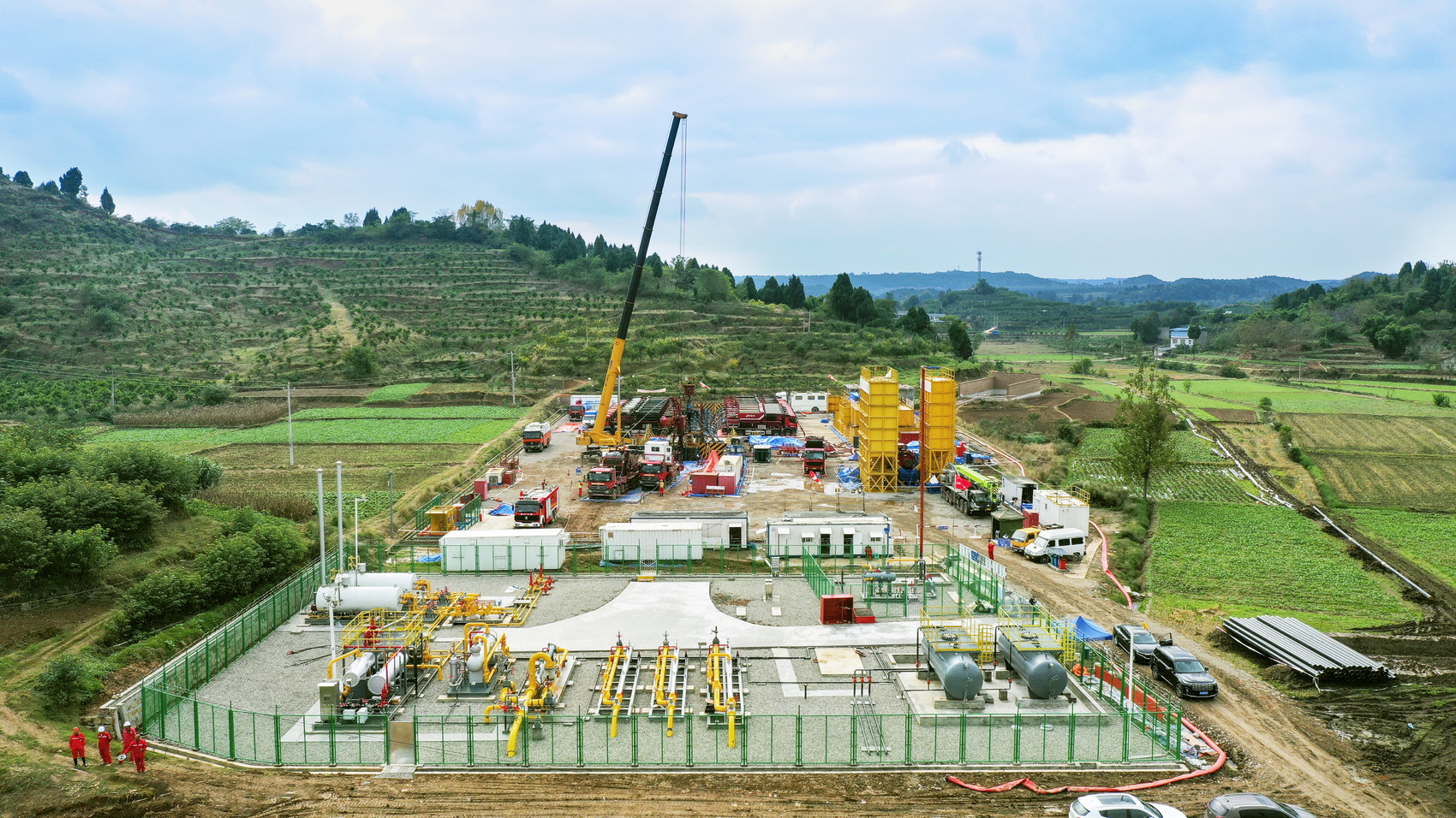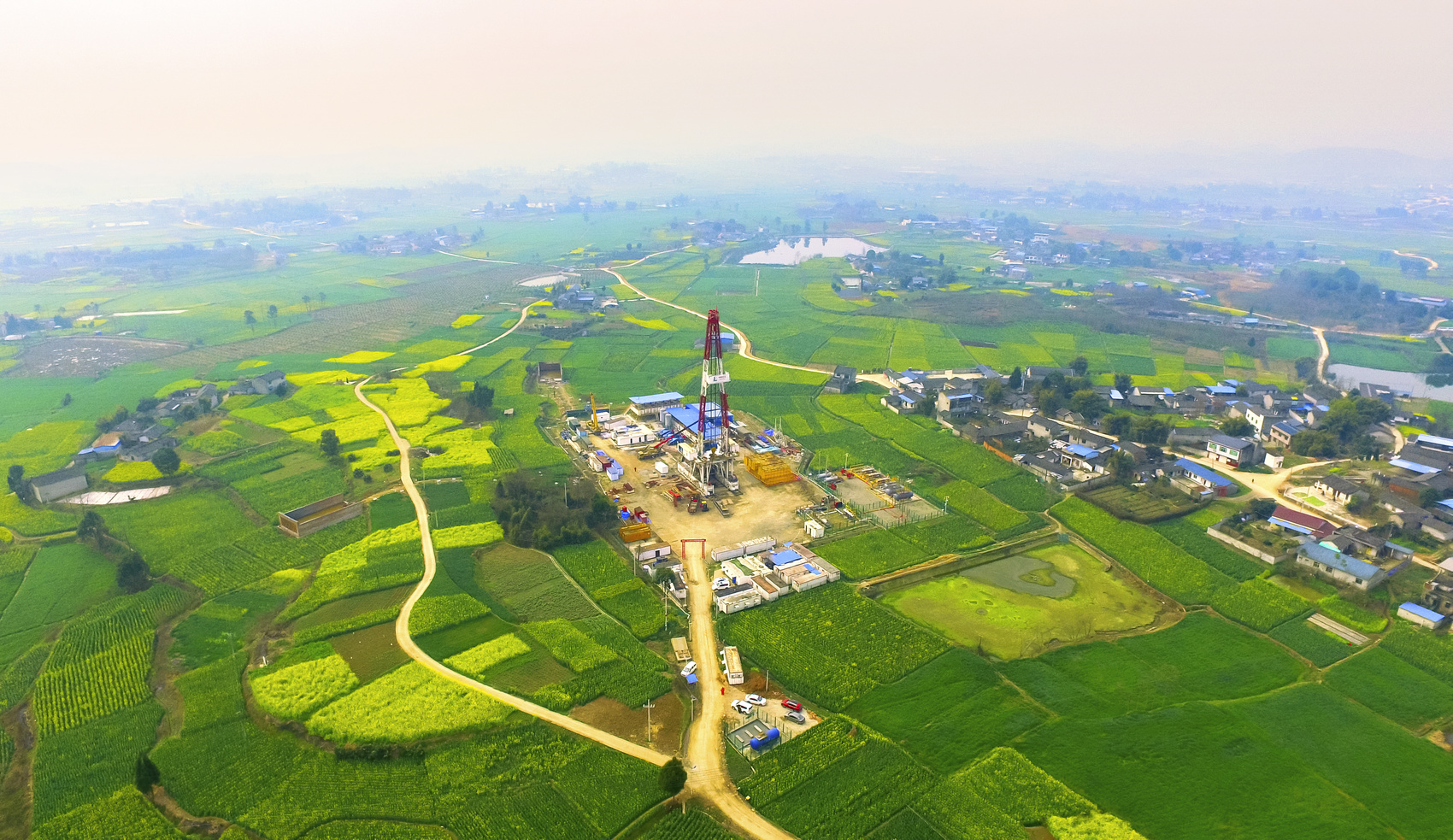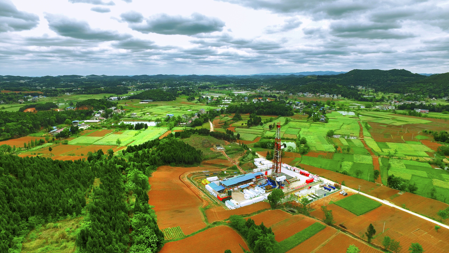 4月22日,绵阳市游仙区石马镇,中国石化部署在四川盆地的深地工程风险探井,设计井深8300多米的新桥1井,已钻进至地下3966米处。距它30多公里外,多口勘探评价井正在合兴场—丰谷区块钻进。