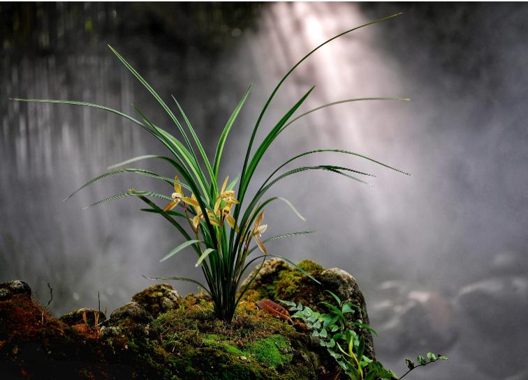 朱德同志一生酷爱兰花,他寻兰、养兰、赏兰,创作了多篇咏兰诗词。朱德爱兰,却并不坐享其成,一定要亲自动手采集、培育,分栽各处。每每出门散步爬山,朱德都会在草丛中寻找兰花的踪影。1962 年,已经76 岁高龄的朱德重返井冈山,他看到山边的石头缝中的几株兰花,便不顾年迈,准备登高去采集。身边的警卫员担心他的安全,不让他去,但还是没有能够阻止。朱德爬上去,小心翼翼地将兰花挖出来,把这几株“井冈兰”带回了家,并创作了《咏兰》。朱德同志一生为追求和实践真理而矢志奋斗,谦虚谨慎、平易近人,淡泊名利、襟怀坦荡,正如那质朴高洁、弥久芬芳的兰花。