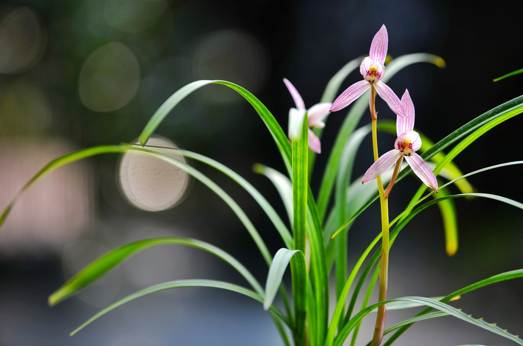 兰,兰科,常绿草本植物,丛生,叶子细长,春季开花,花白色、淡黄色至绿色、棕红色或深青铜色,气味清香,是我国著名的盆栽观赏植物。