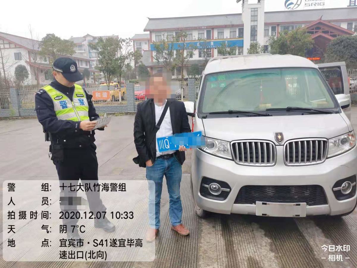 12月7日上午,高速公路三分局十七大队民警在S41遂宜毕高速公路绥庆收费站开展超员、超速违法行为查处,10时20分许,民警拦截了一辆未悬挂号牌的超速车辆,在证据面前,驾驶员曹某承认了自己在高速公路上超速行驶的事实,随后,民警在查看驾驶员车上的临时号牌后发现,该车临时号牌于2020年11月13日办理,有效期至2020年11月28日,现已超过使用有效期,民警立即对该辆小货车进行搜查,在该车的后座发现了拆封后的号牌(川Q1N***)。