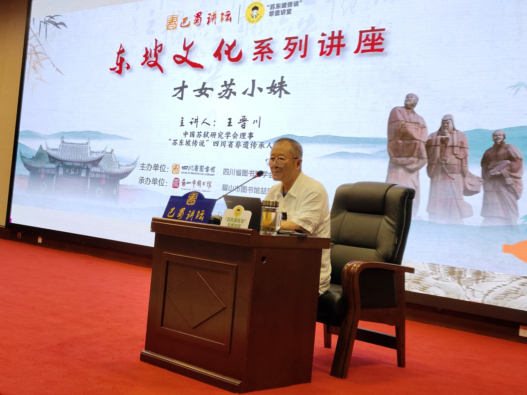 由四川省图书馆、四川省图书馆学会、新华文轩出版传媒股份有限公司主办,眉山市图书馆、眉山市图书馆喆雅书坊分馆承办,四川省图书馆巴蜀讲坛携手“苏东坡传说”非遗讲堂开启的系列讲座,带领读者共同追寻东坡文化足迹,深入探索三苏文化。在本期讲座中,王晋川讲述了苏小妹的故事,回顾眉山的千年文化和巴蜀传统文化。