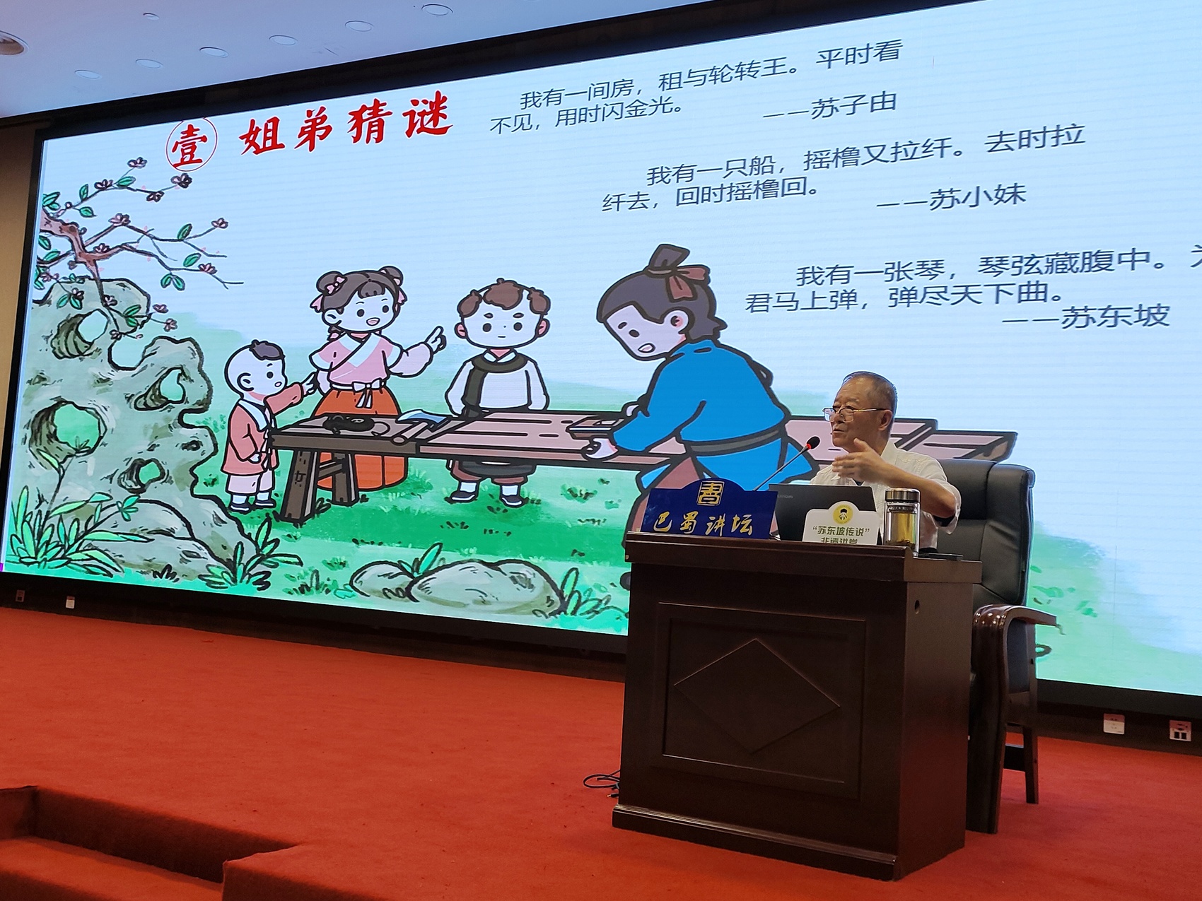 “苏小妹”这个名字,在中国民间知名度极高,有人猜测她是记载于三苏祠宗谱之上的苏八娘,民间更有“苏小妹三难秦观”的故事流传。她的名字最早见于南宋无名氏的《东坡问答录》(又名《东坡居士佛印禅师语录问答》),“东坡之妹,少游之妻也。”讲座伊始,王晋川老师以《少年苏东坡传奇》的动画片开场,引入苏小妹这个人物。