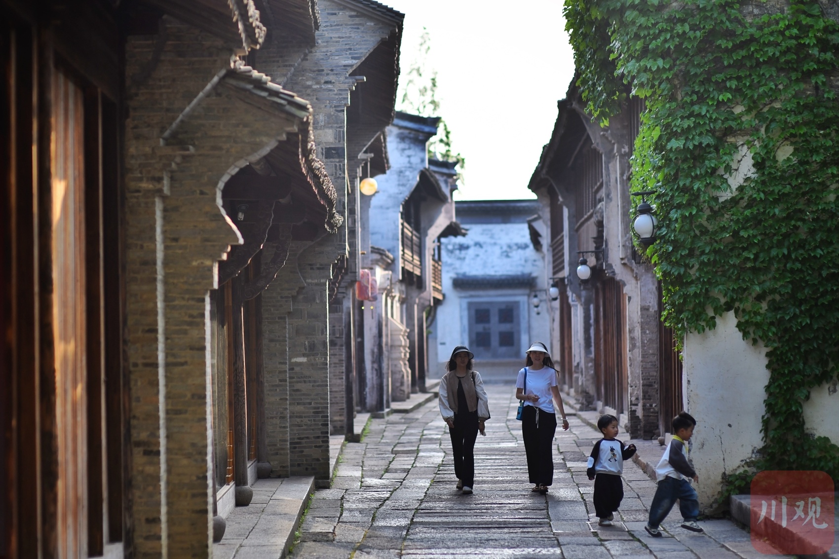 夕阳西下,游客们踩着青石板上的余晖回家。