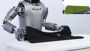 想让机器人帮忙叠衣服,只用给它下指令,“Walker,可以帮我叠一下衣服吗?”叠衣服机器人就开始忙活了,折、叠、拉、放,完事儿!