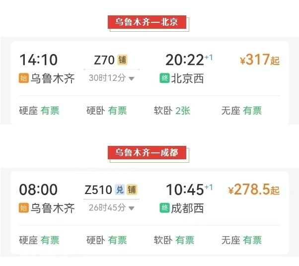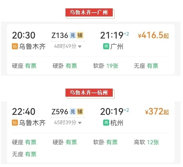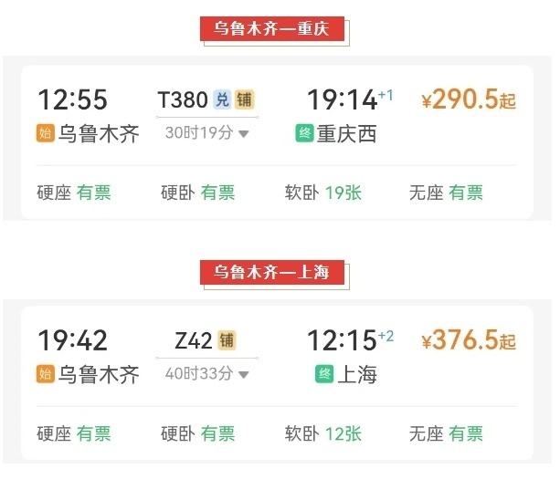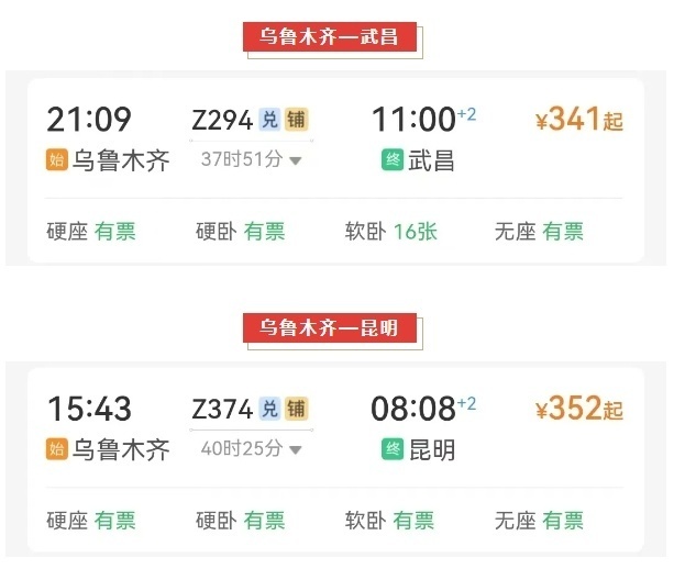 部分车次如下