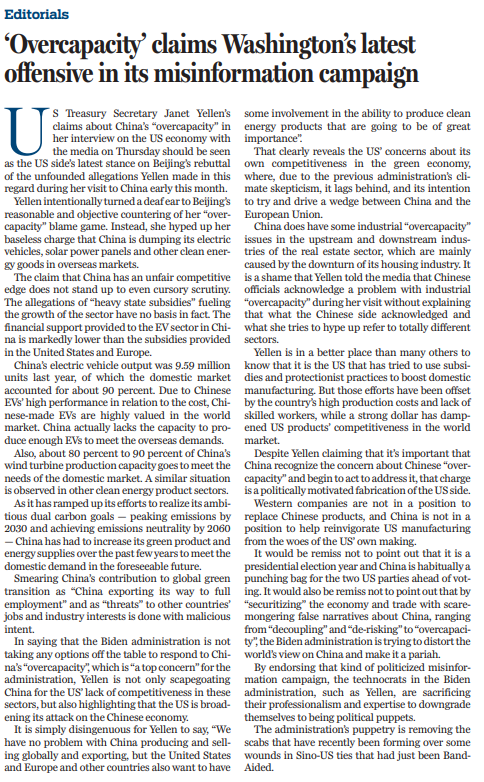 原文标题:'Overcapacity' claims Washington's latest offensive in its misinformation campaign