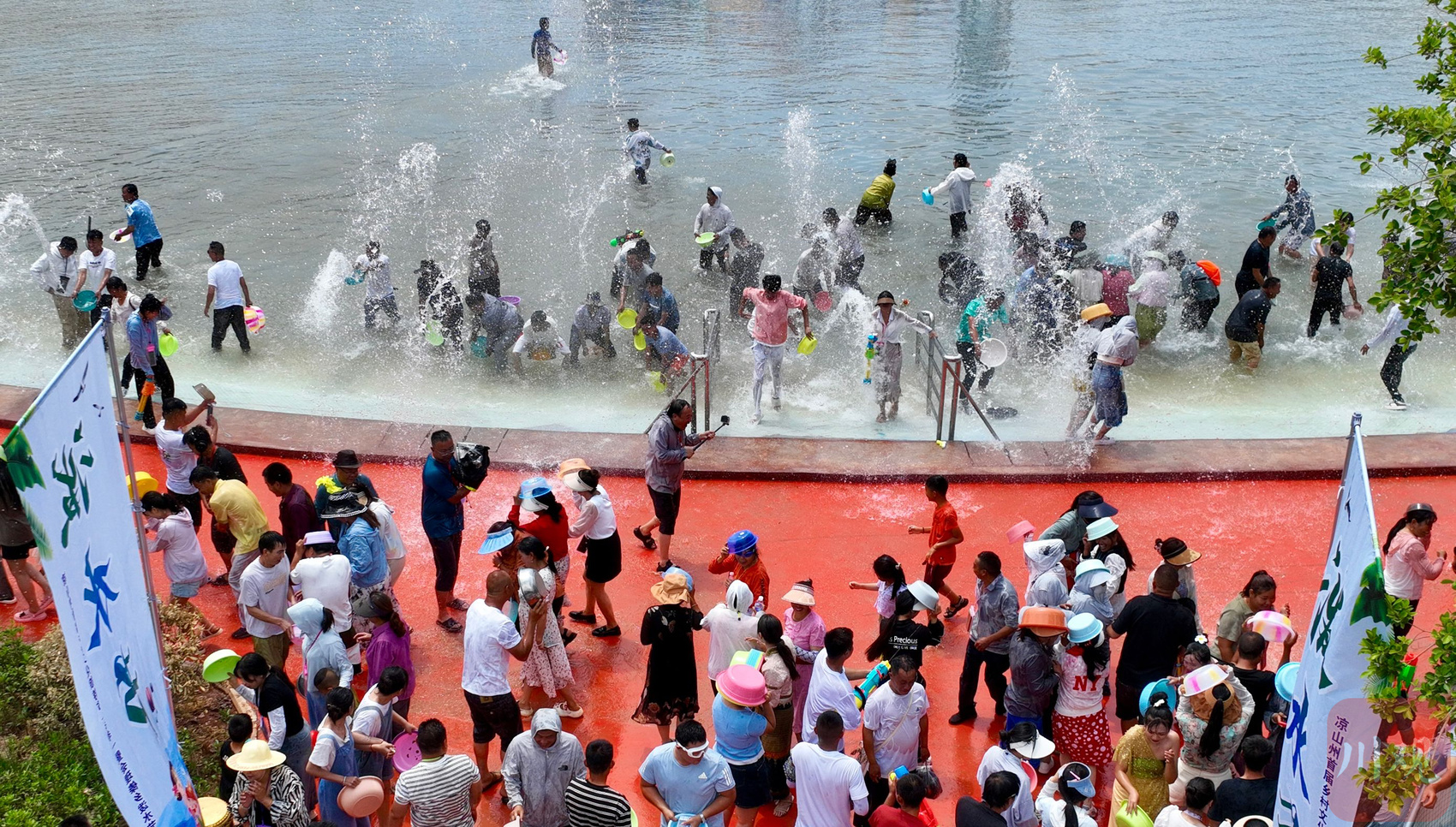 泼水狂欢开启,水枪、水盆齐上阵,或“单打独斗”,或“团队作战”,互相泼水嬉戏,将祝福和希望洒向彼此。飞溅的水花在空中形成一道道水桥,映照出节日的热闹与欢乐。