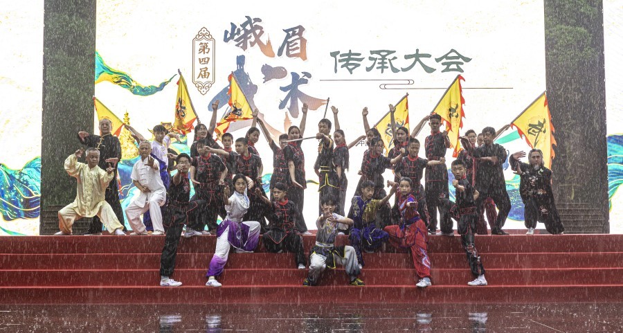4月29日上午,伴随着《何为峨眉》的精彩武术表演,第四届峨眉武术传承大会在峨眉山景区一山亭广场正式开幕。