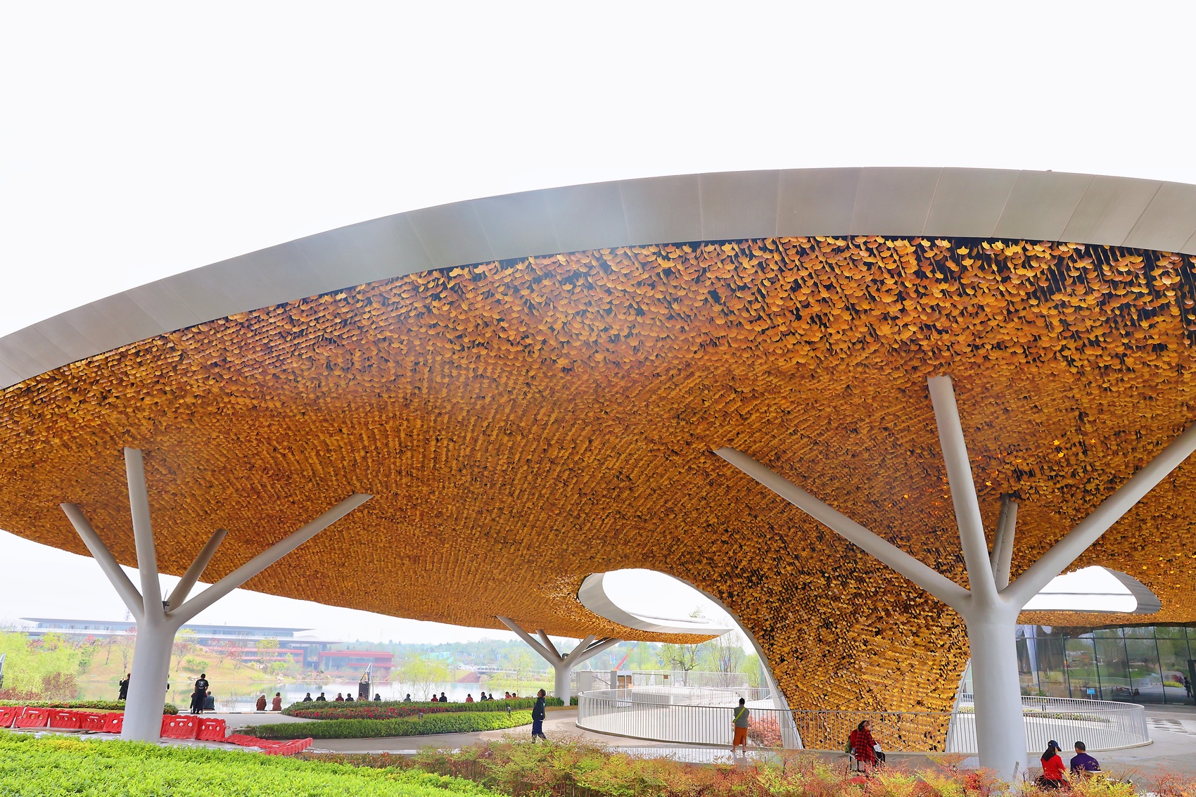 主展馆100万张金属“银杏叶”形成风铃天幕。
