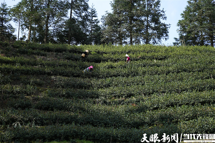 雷山县望丰乡干河沟茶场,满山的茶园里,都是采摘新茶的苗族妇女。只见她们手挽竹篮,指尖飞舞,嫩绿的茶青承载着春天的希望;