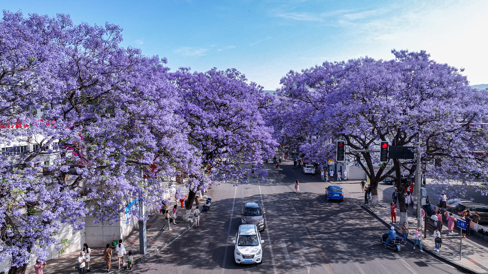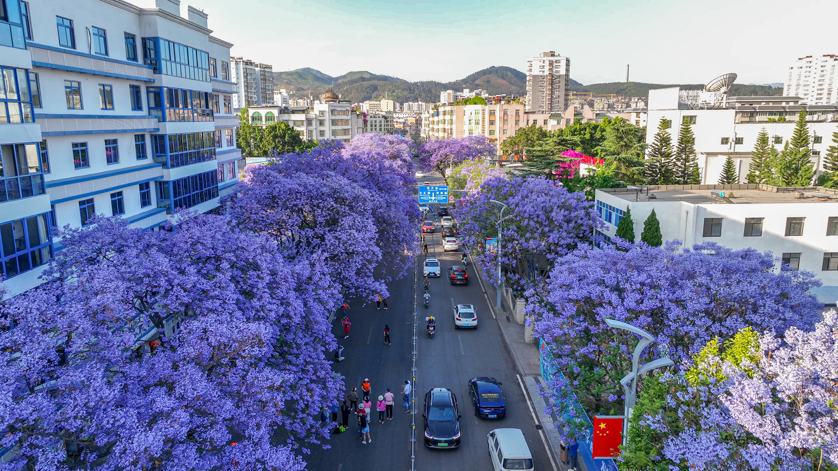 在西昌,每一条路和蓝花楹的搭配都别具一格。除了航天北路的壮美,还有建昌路的雅致、健康路的婉约、文汇路的繁华、创新创业路的活力、大石板古村的幽静、邛海湿地公园的“美美与共”……