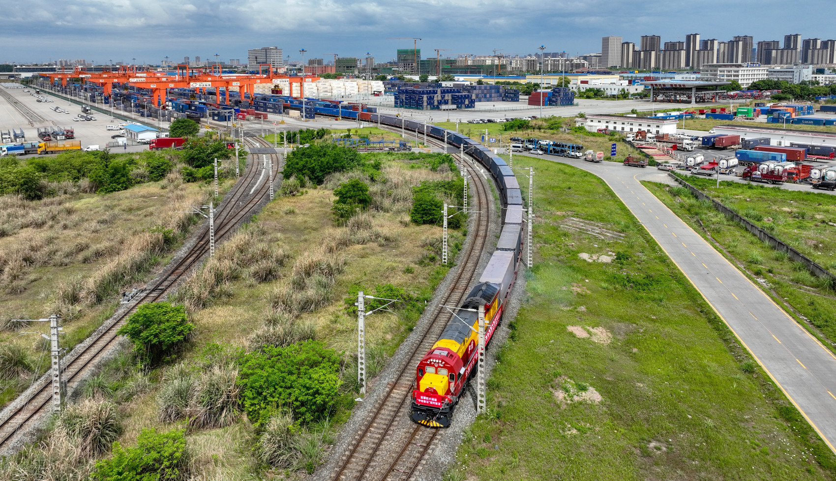 "中老泰马”全铁快速班列在蓉首发。白桂斌 摄