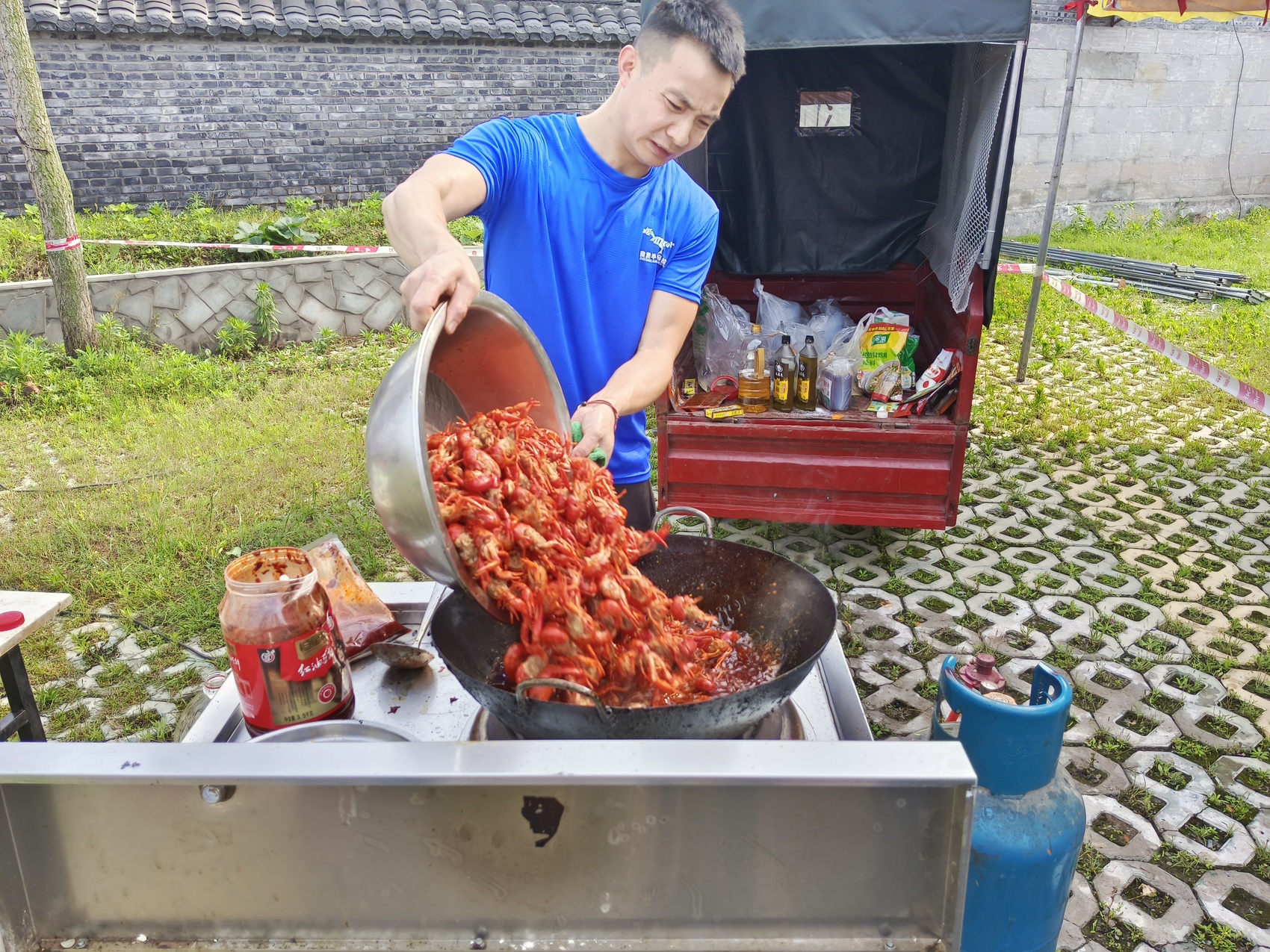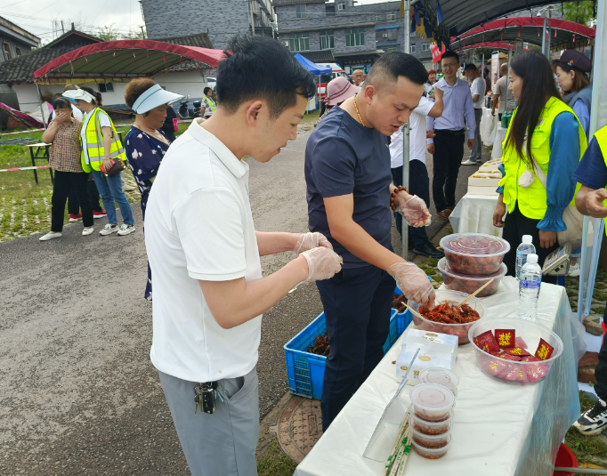在农产品展销区,大厨现场烹饪龙虾,香味四溢。“虾肉Q弹,鲜香味美。”从富顺县城特意赶过来的杜先生吃完龙虾后竖起了大拇指。“活动太热闹了,人气爆棚,我还买了10斤小龙虾,晚点回去和家人一起分享。”张先生说道。