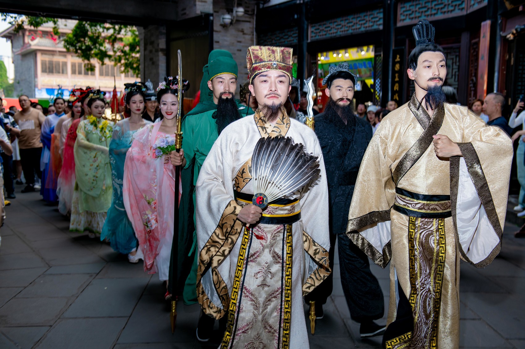 三国情景剧在不同景点上演、“刘关张”带领观众玩转锦里古街……5月1日上午,“潮玩三国 烟火锦里”在成都武侯祠博物馆启幕。活动期间,一幕幕“三国”故事、一个个“三国”时期传奇人物,与潮流元素结合,走进武侯祠景区,带领游客沉浸式体验别样“三国”文化。