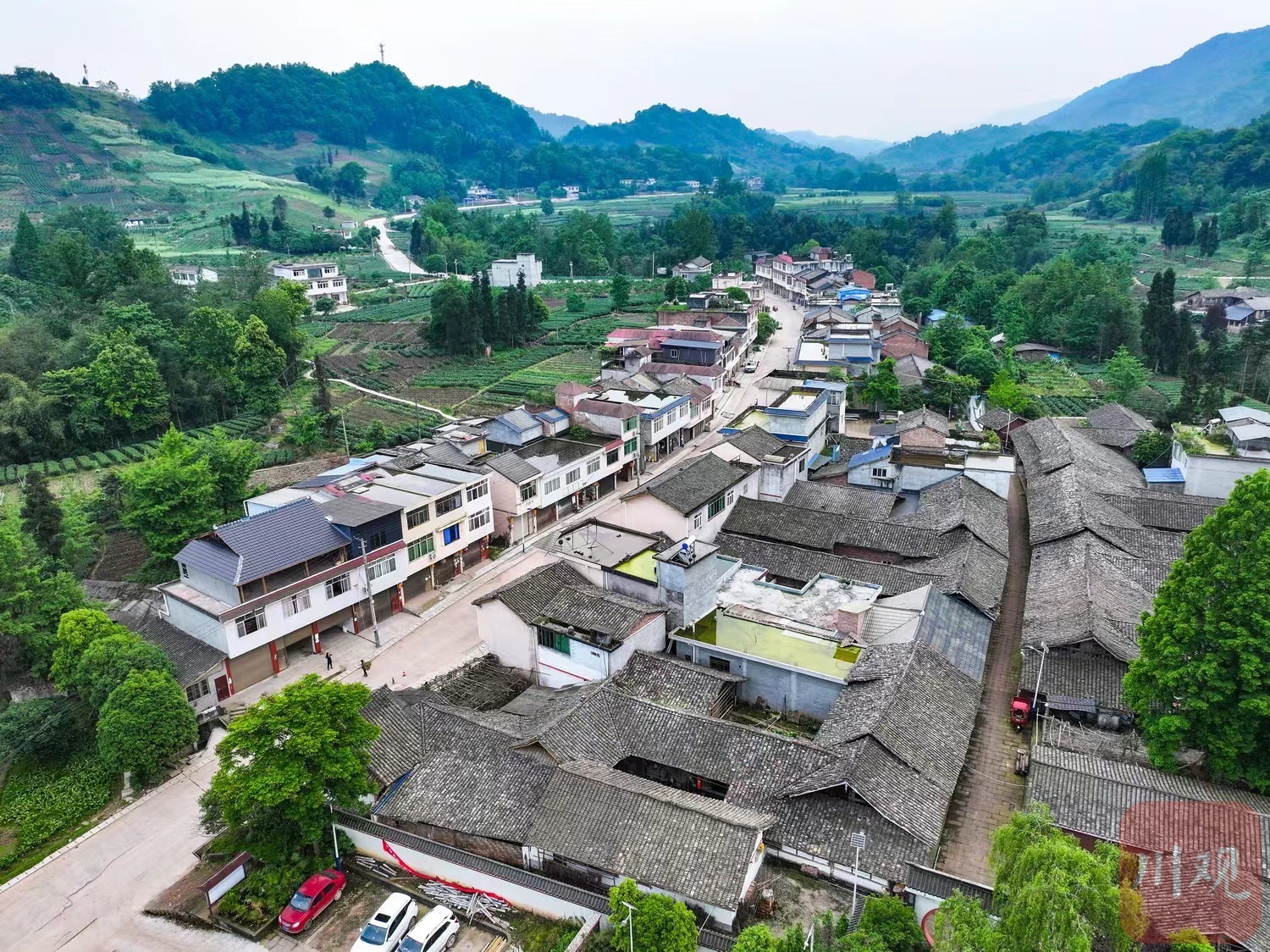 雅安市名山区中峰镇朱场村被评为“第四批中国传统村落”,鸟瞰朱场村,村里有不少旧时的川西民居。