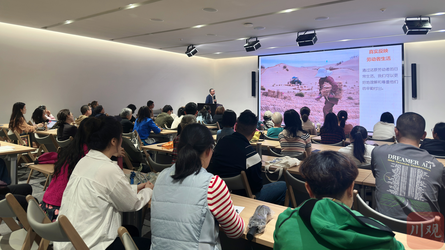 活动现场,刘达通过讲述一个个拍摄背后的故事,让大家感受劳动者的美和尊严。他结合自己的拍摄经验,以纪实人文摄影的技巧和方法为切入点,分享拍出人文之美的心得体会。刘达说,人文的核心在于回归人性,纪实和美相结合的人文照片才是佳作,即便摄影技能较为娴熟,摄影师仍需要融入环境,用心感受,“摄影的关键在于感知力,在观察中感受,捕捉触动内心的瞬间,比掌握拍摄技巧更重要。”