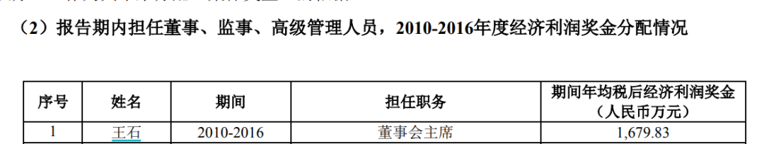 根据万科2017年度报告显示,2010-2016年期间,王石作为董事会主席,年均税后经济利润奖金1679.83万元。