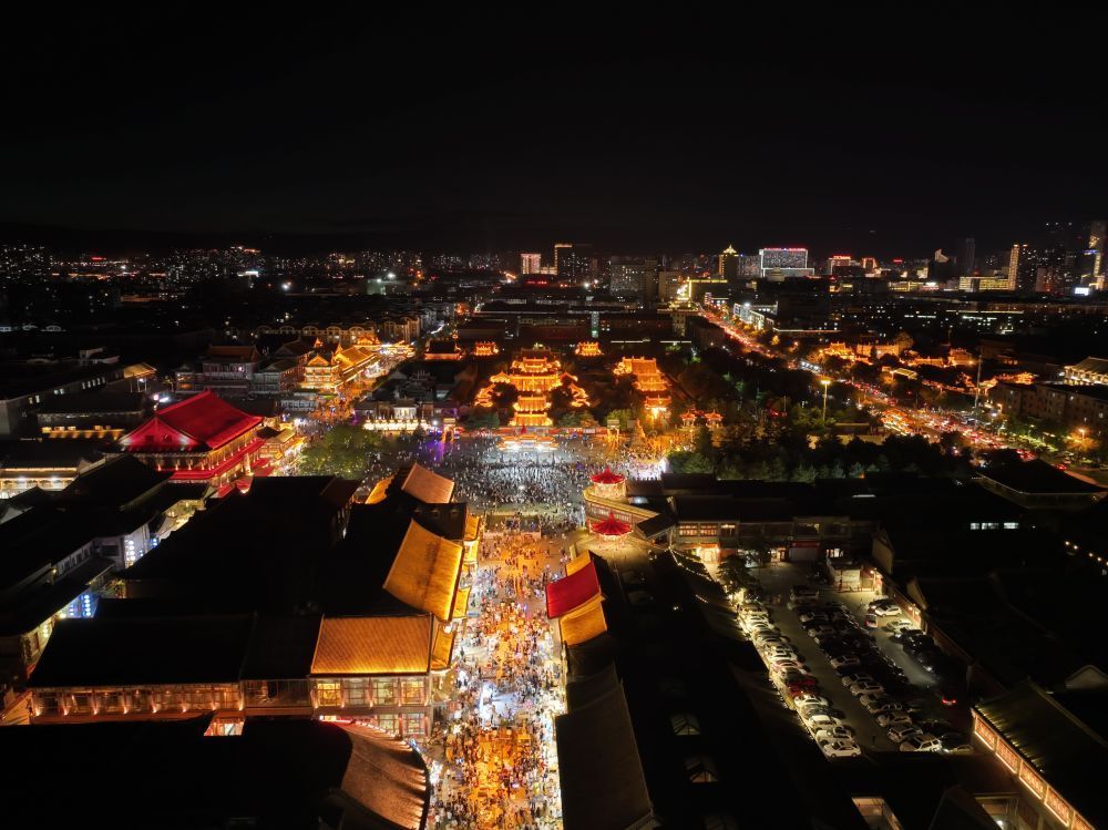 塞上老街夜间游人如织。新华社发(呼和浩特市玉泉区融媒体中心供图)