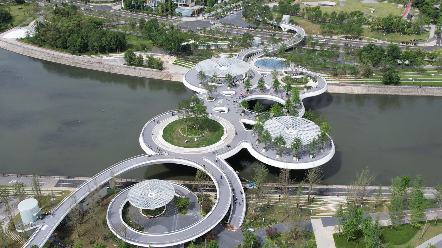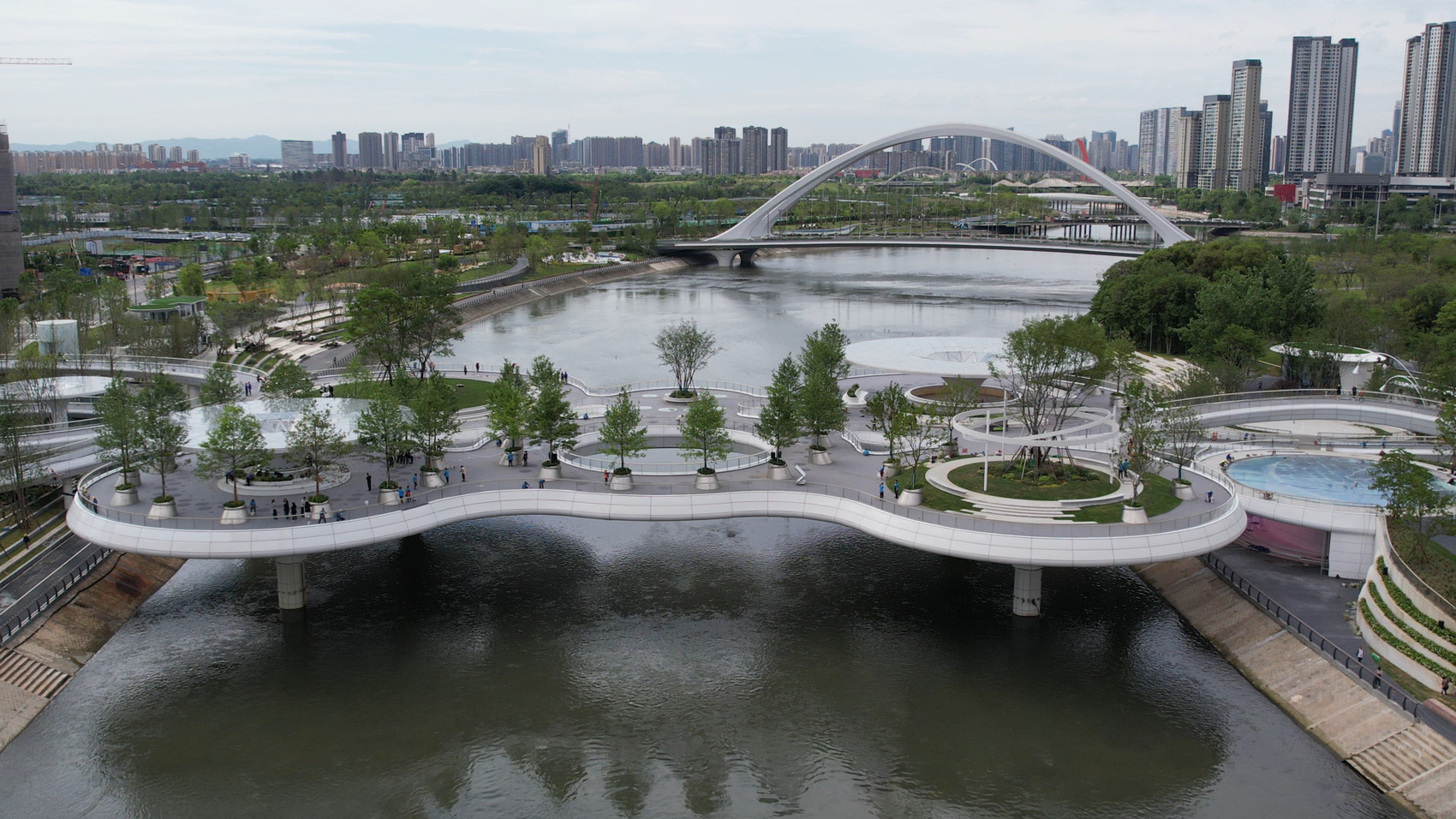 目前,这座“水上公园”已正式向公众开放,不仅彰显出成都公园城市的特质,也成为了成都锦江上的一张崭新的名片。