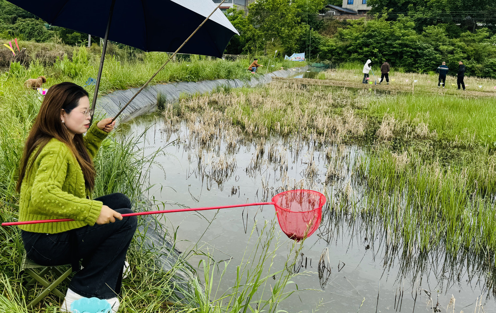 5月1日,在绵阳市游仙区石马镇金树村小龙虾养殖基地,肥美的龙虾和优美的乡村环境吸引了大批绵阳周边群众前来垂钓、品尝。除吃、钓龙虾外,这个“五一”节,在金树村,游客还可以参加挖折耳根、割麦子、钓清水鱼等乡村野趣、农事体验活动。