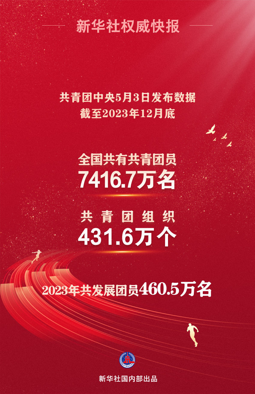 共青团中央5月3日发布数据显示,截至2023年12月底,全国共有共青团员7416.7万名,共青团组织431.6万个。2023年共发展团员460.5万名。
